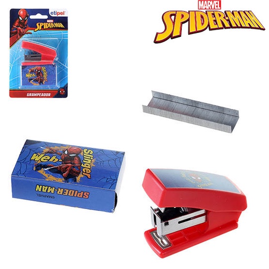 Grampeador De Metal / Plastico Com Extrator De Grampo + Caixa Com 500 Grampos Homem Aranha/Spider Man