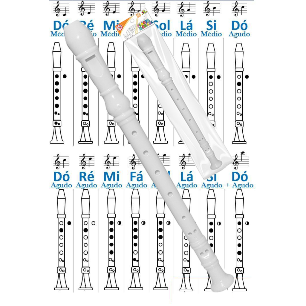 Flauta Doce Branca Com Guia Pratico para Leigo Peça Uma Musica Instrumento Musical 30 Cm