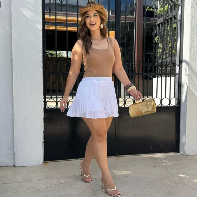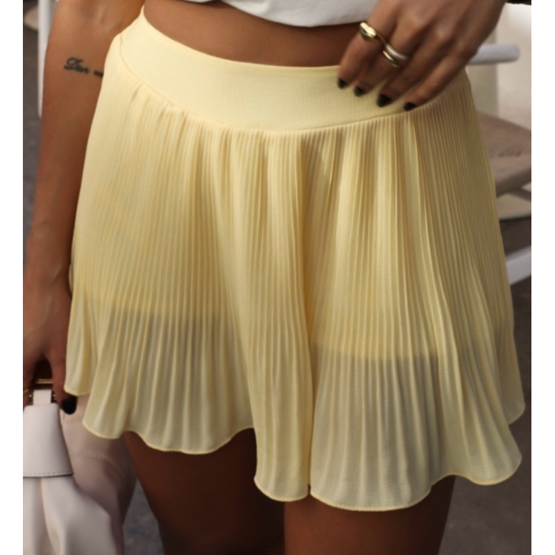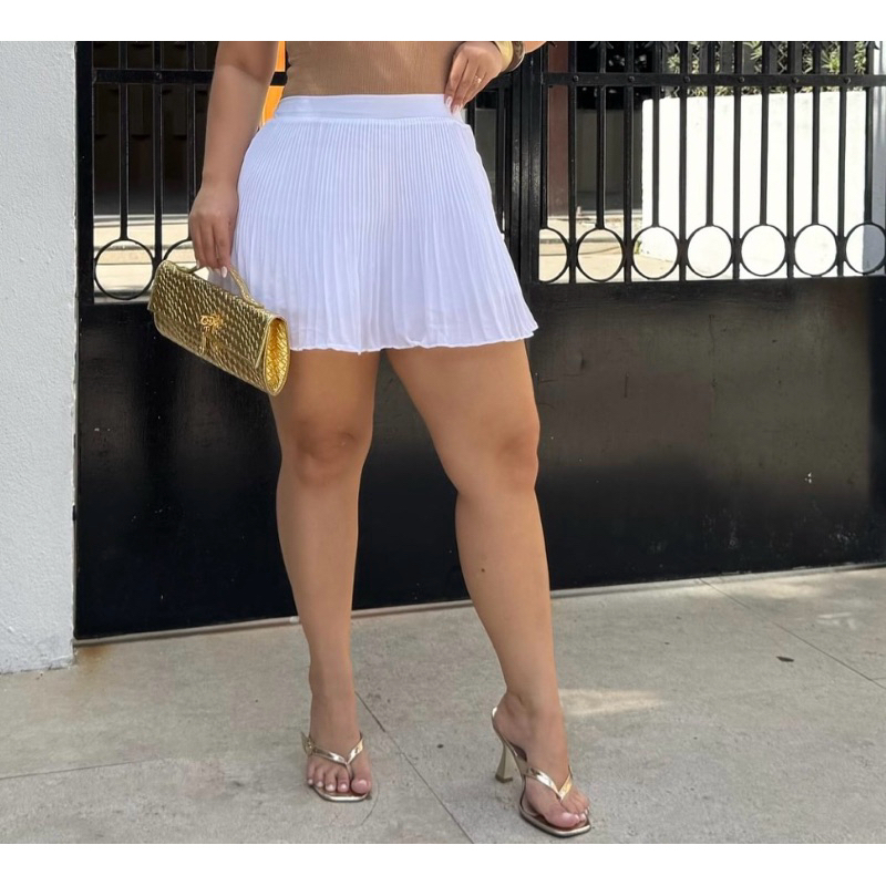 Short Saia Plissado Cintura Alta Casual Festas Natal Ano Novo Moda Verão