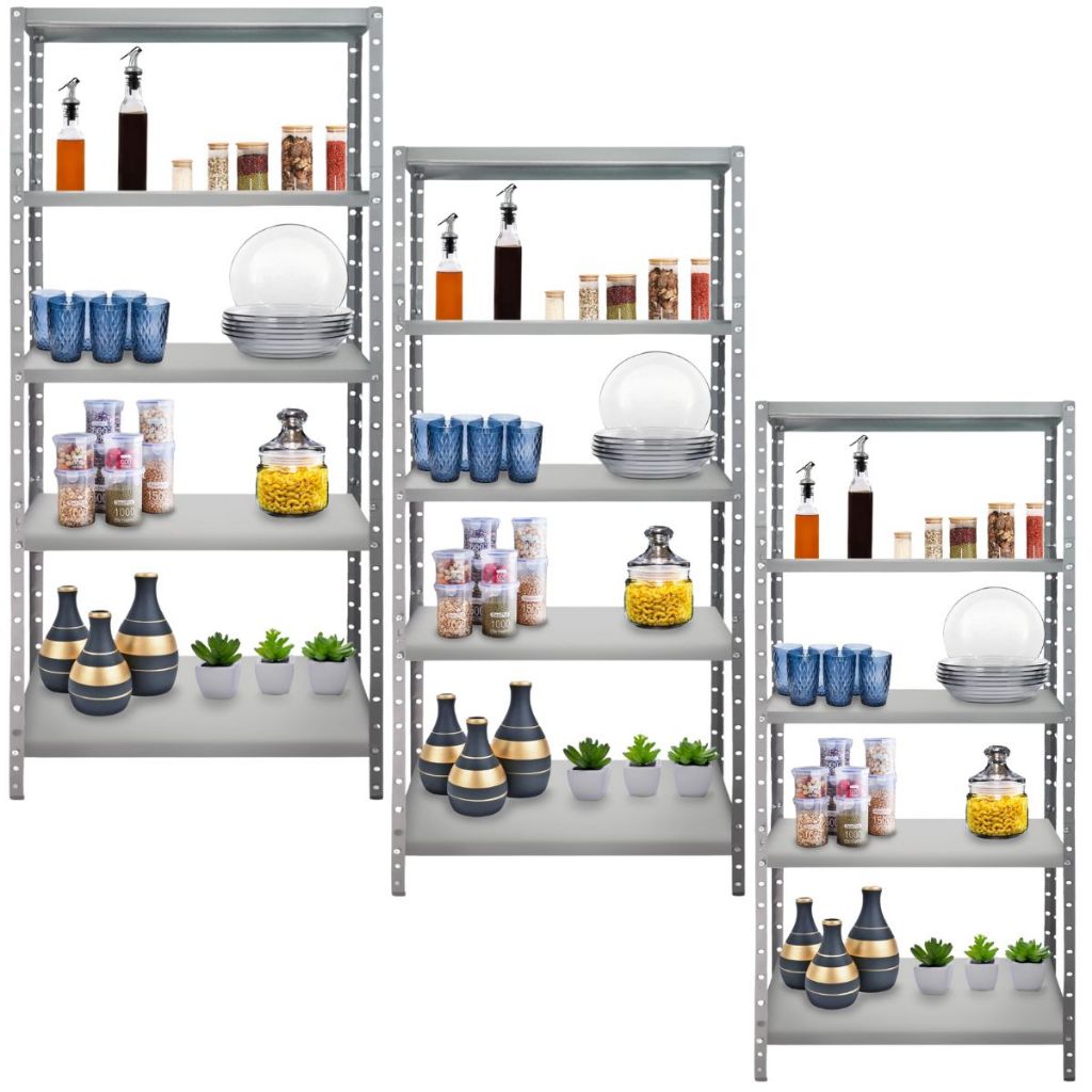 Estante 5 Prateleiras Cozinha de Aço Multiuso Panelas Casa Sala Quarto Organizador Kit 3 Unidades