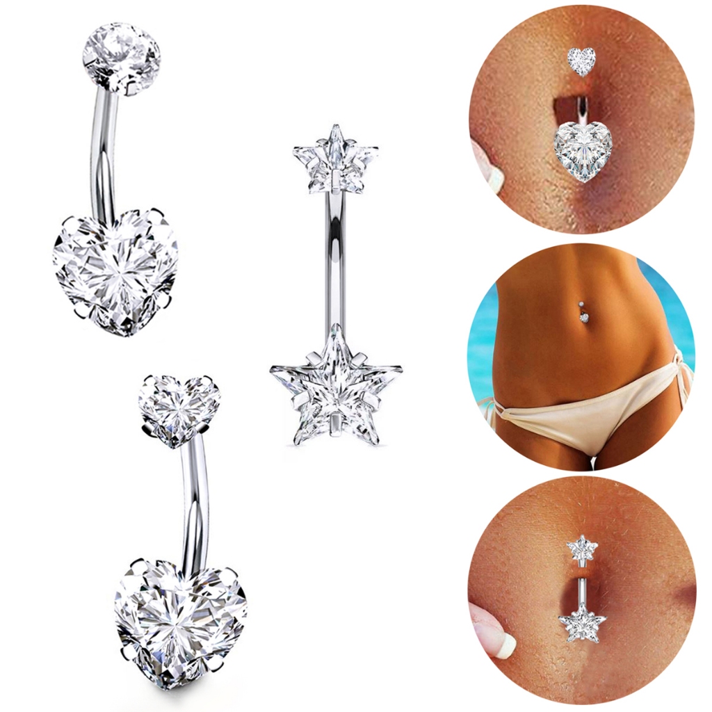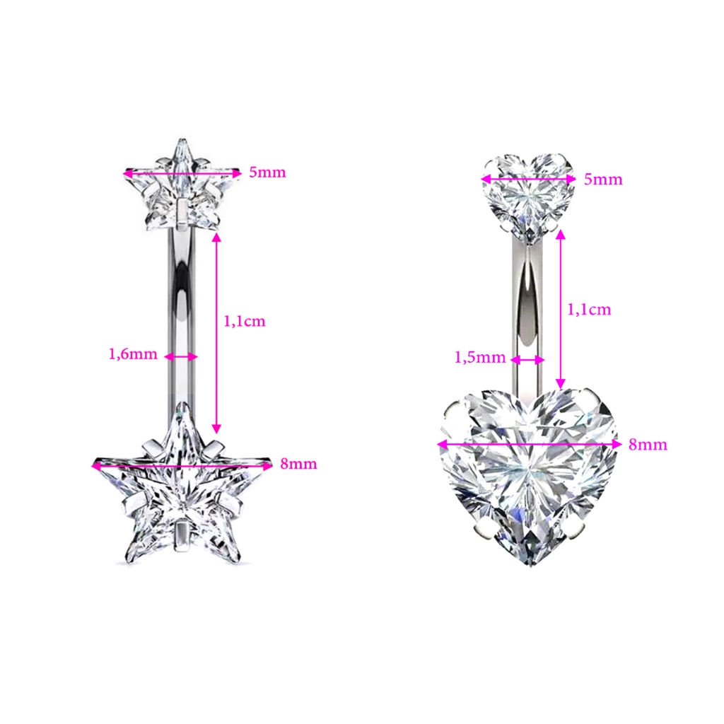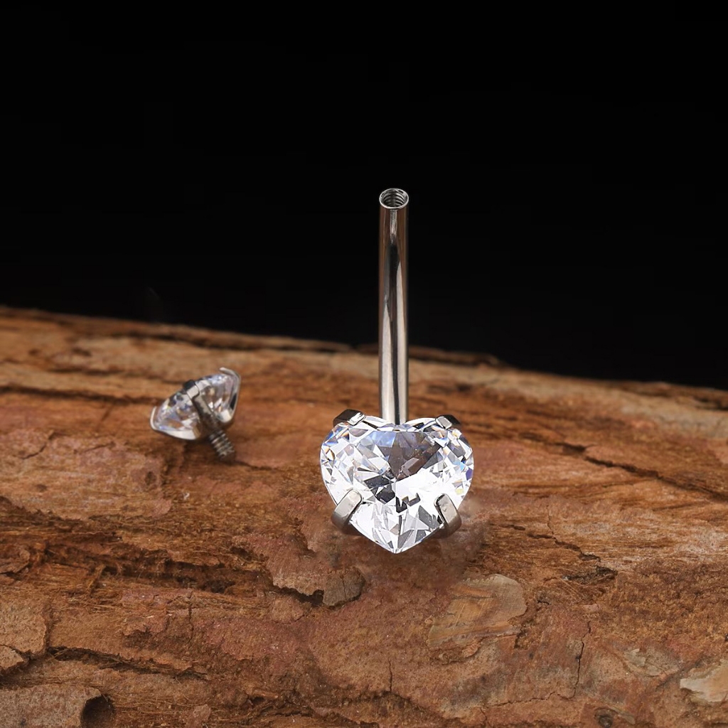 Piercing de Umbigo Titânio Coração Zircônia Jóia Hipoalérgica