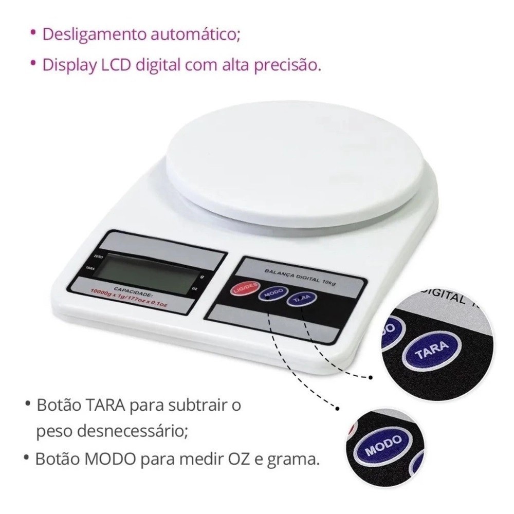 Balança Digital de Cozinha 10Kg Grátis 2 PILHAS - Para Dieta-Regime-Fitnes-Whey-Creatina