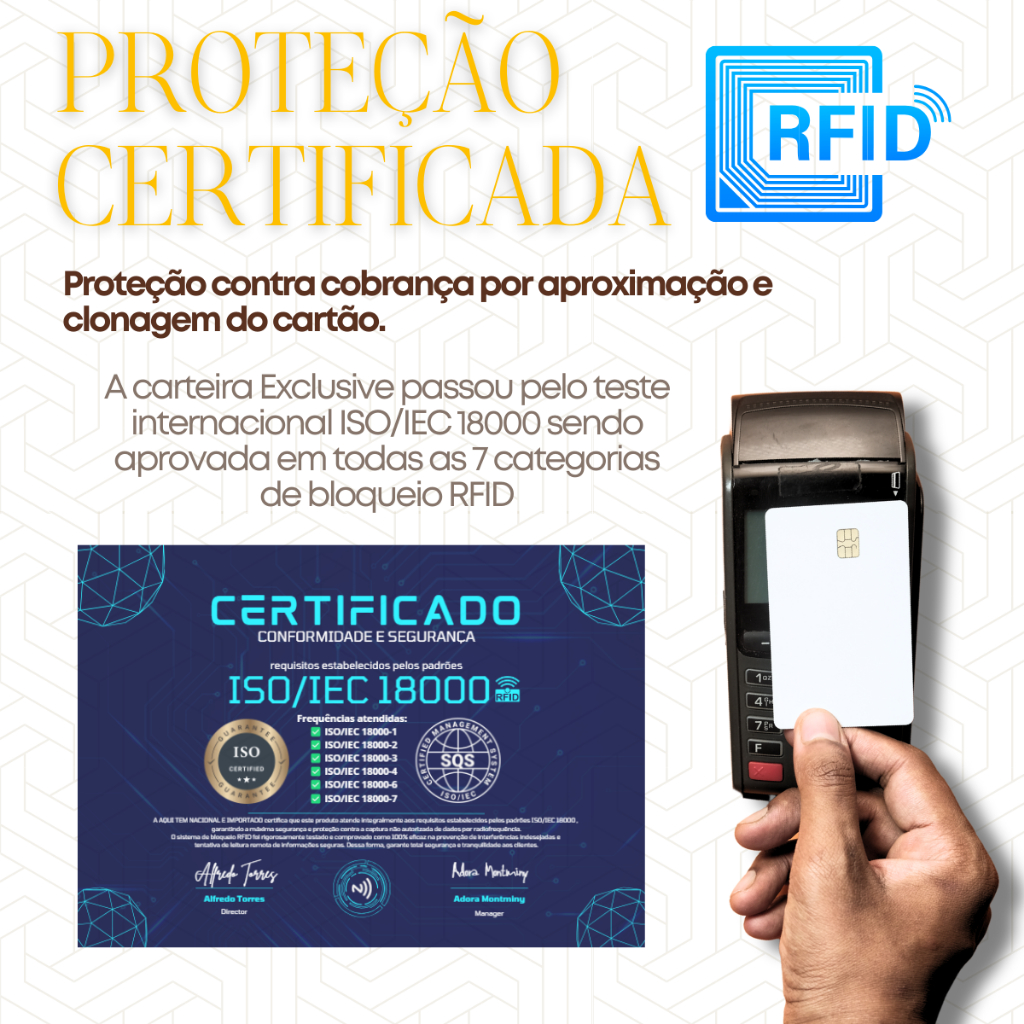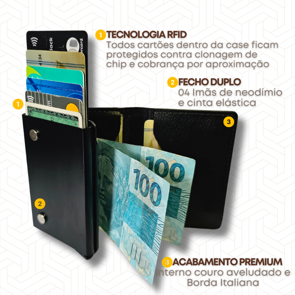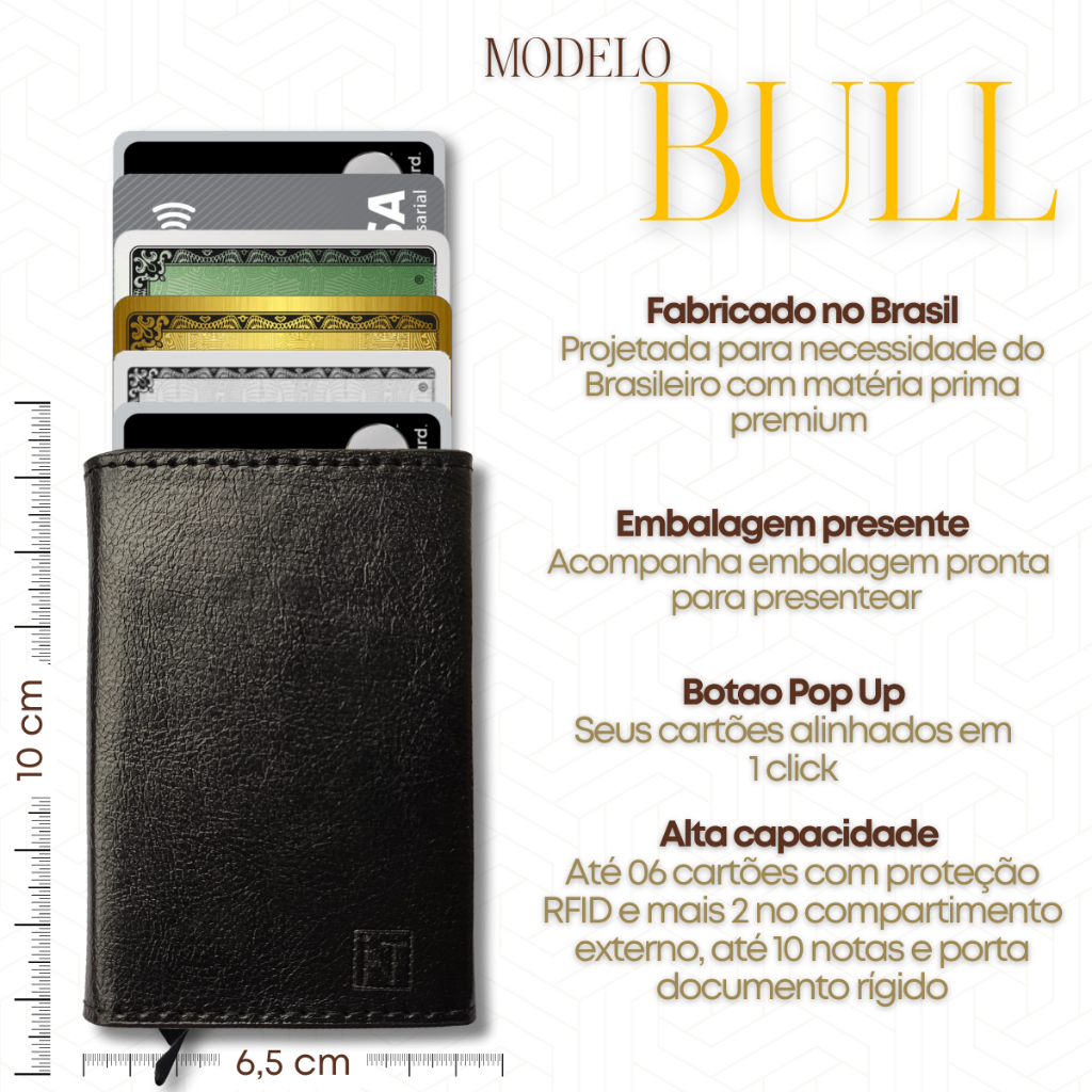 Carteira Masculina Preto Porta Cartão Antifurto Slim Feminina Rfid Couro PU Fibra Exclusive BULL