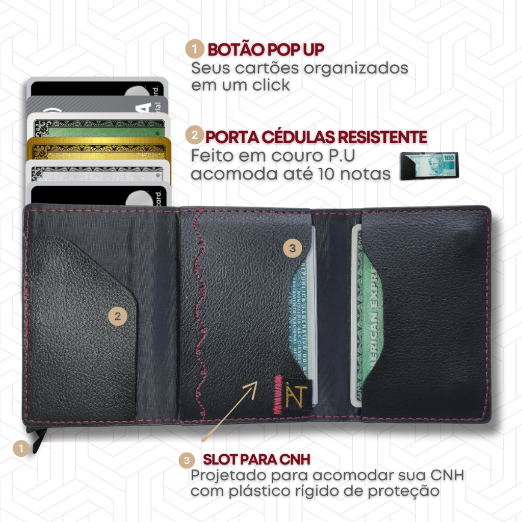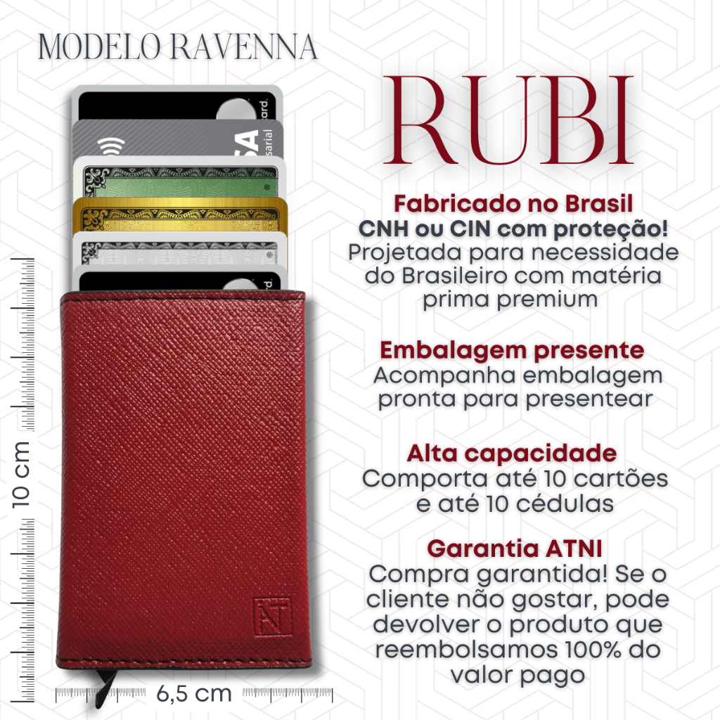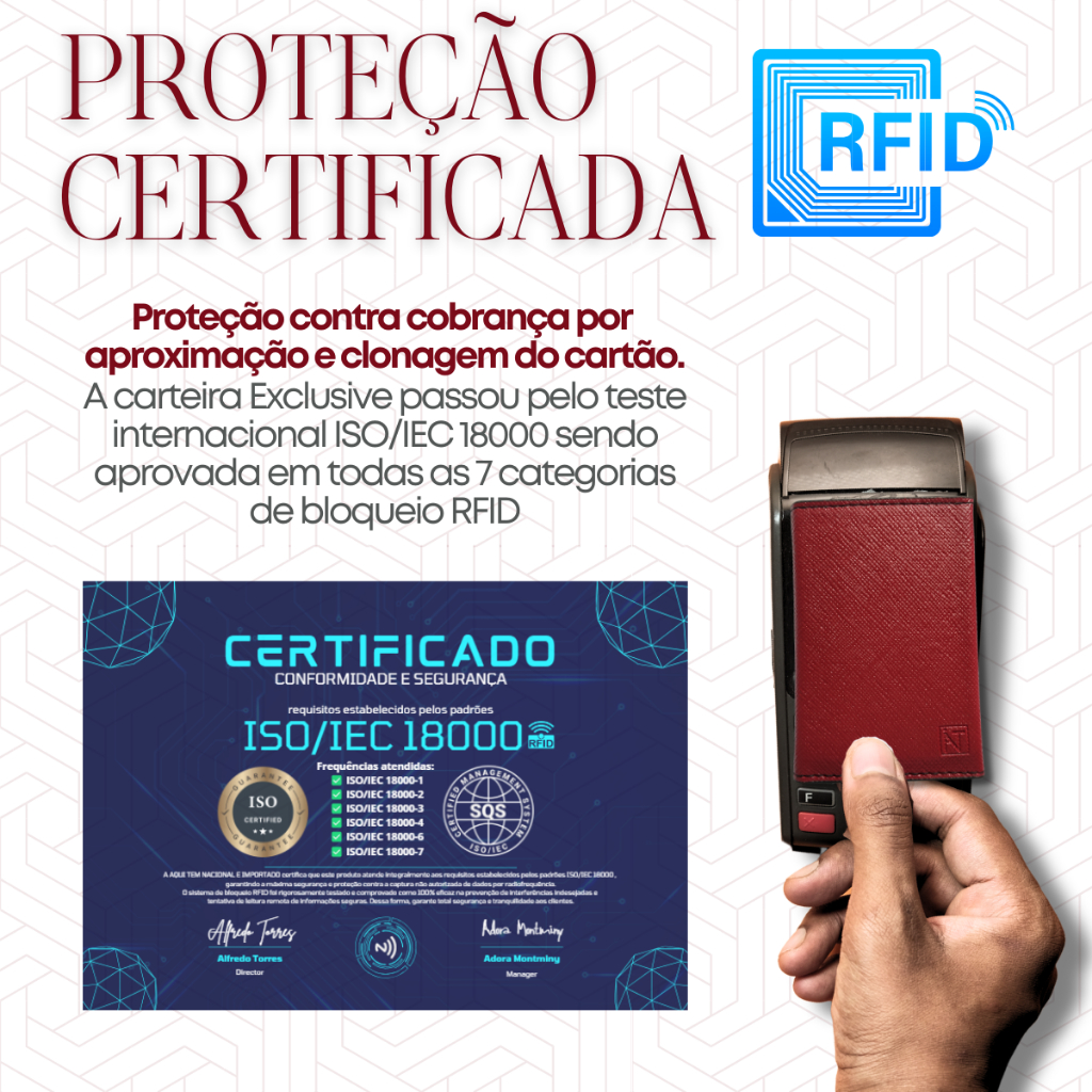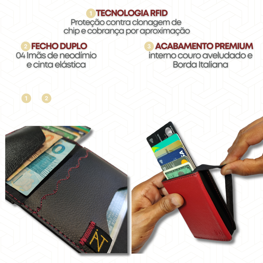 Carteira Feminina Vermelho Porta Cartão Antifurto Slim Rfid Couro PU Fibra Exclusive