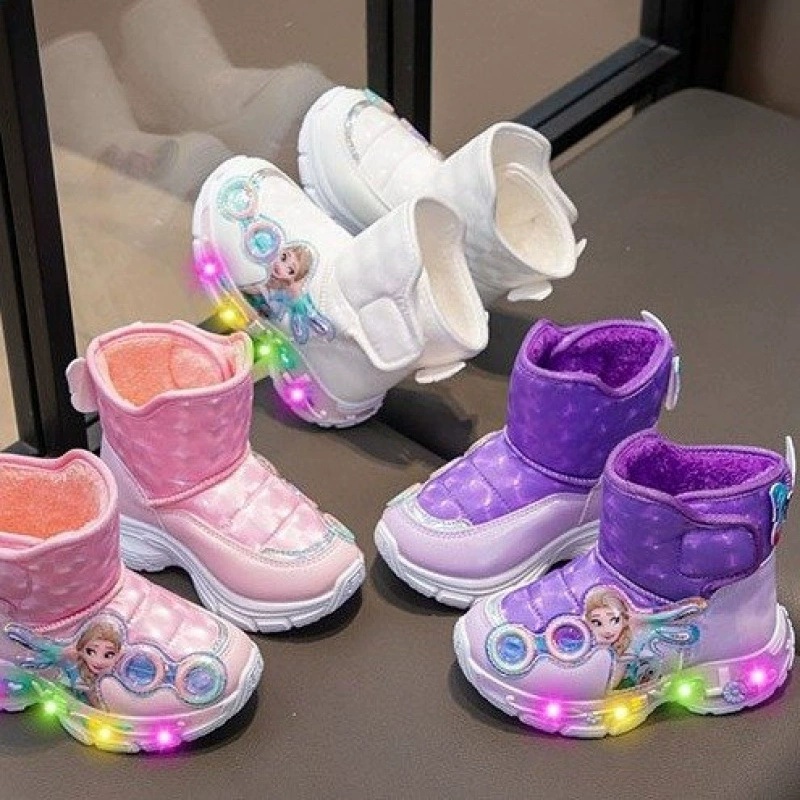Frozen Elsa Girl Engrossar Botas De Neve Bebê Curtas De Lã Inverno Criança Quente Algodão Com Fundo Macio