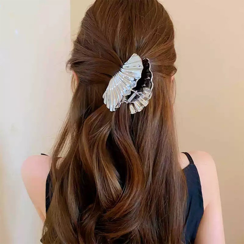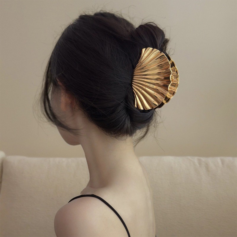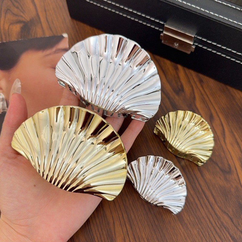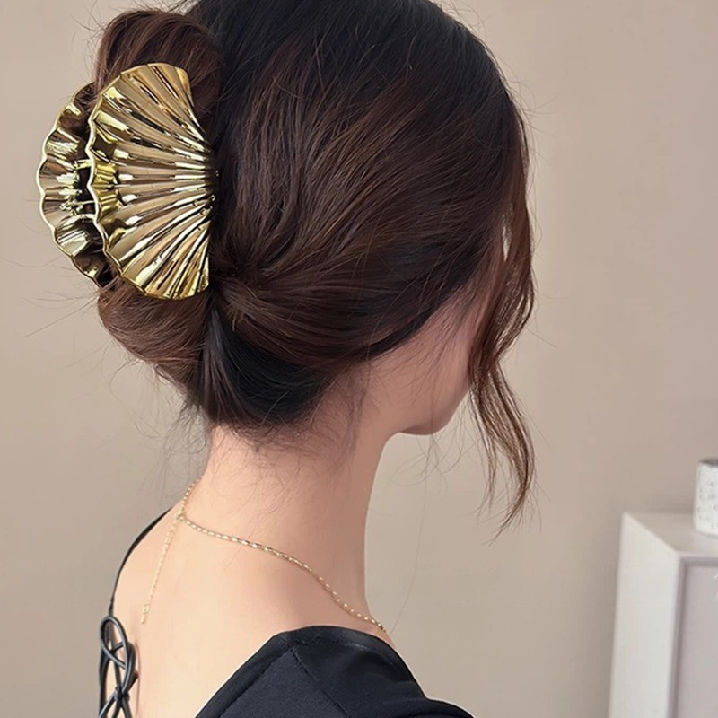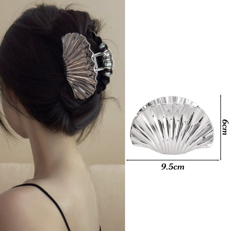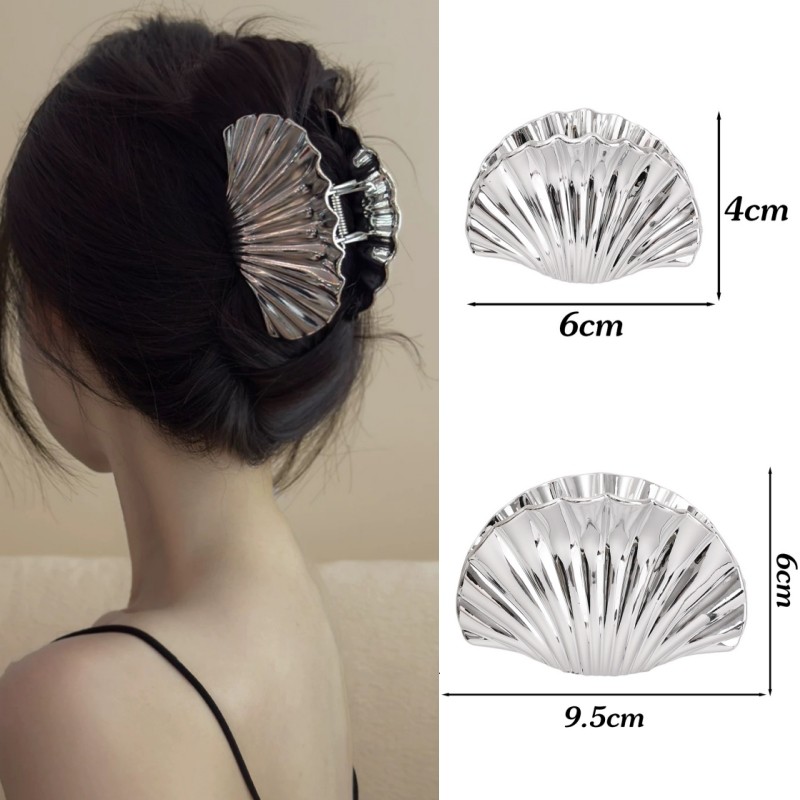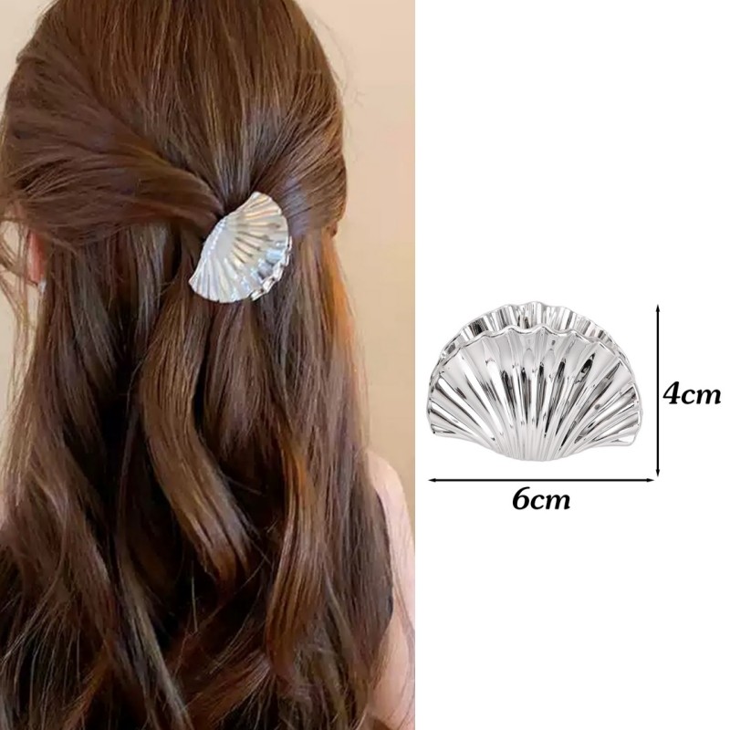 2 Peças De Grampos De Garra De Cabelo Em Formato De Concha De Textura-Clipe De Tubarão Da Moda-Alfinetes De Rabo De Cava