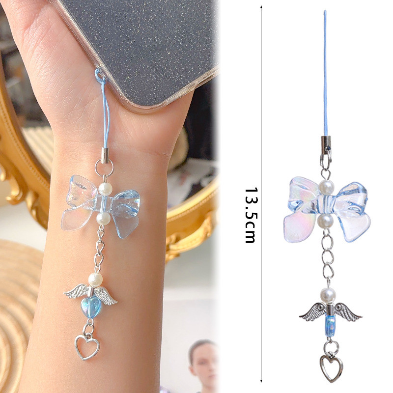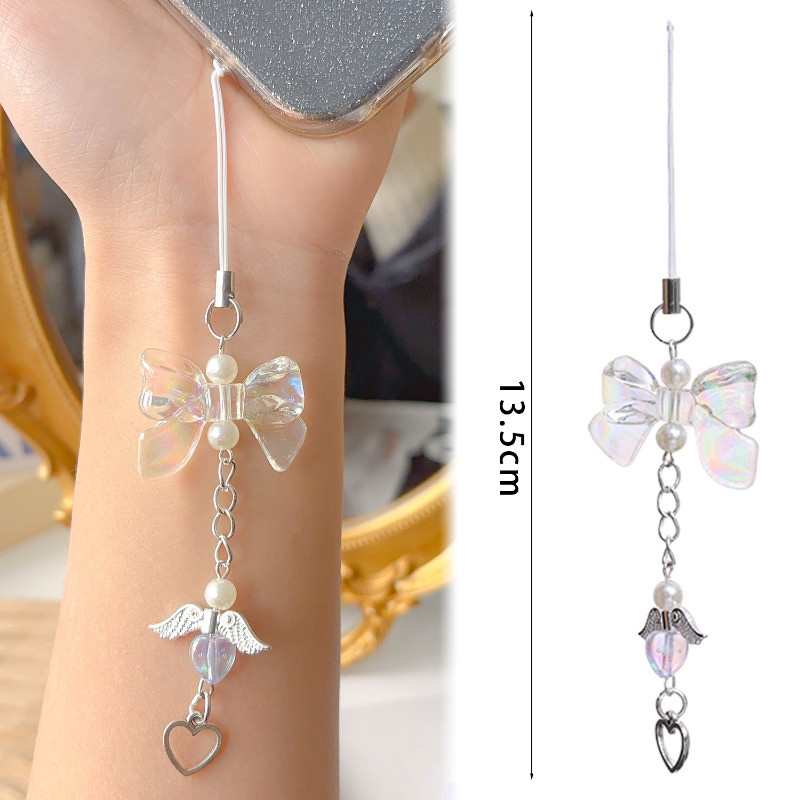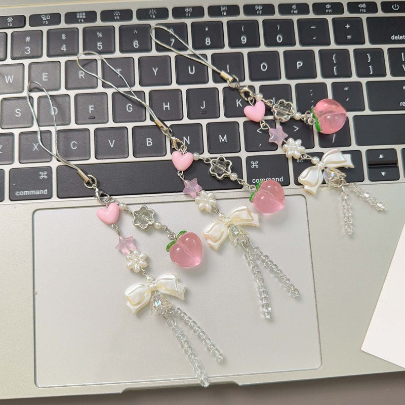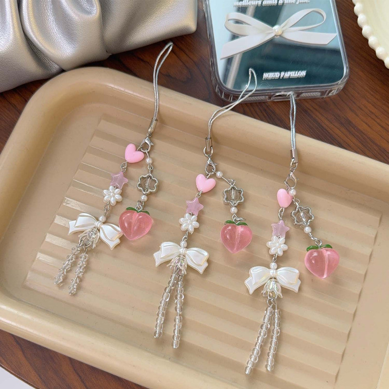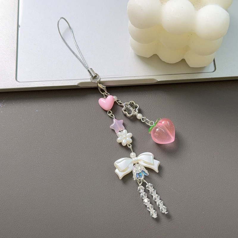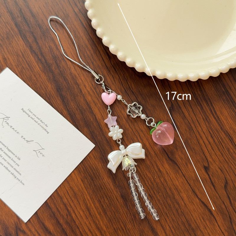 [Destaque] Chaveiro Com Pingente De Pêssego Bowknot-Presente De Aniversário-Corrente Suspensa Para Telefone-Ornamento Su