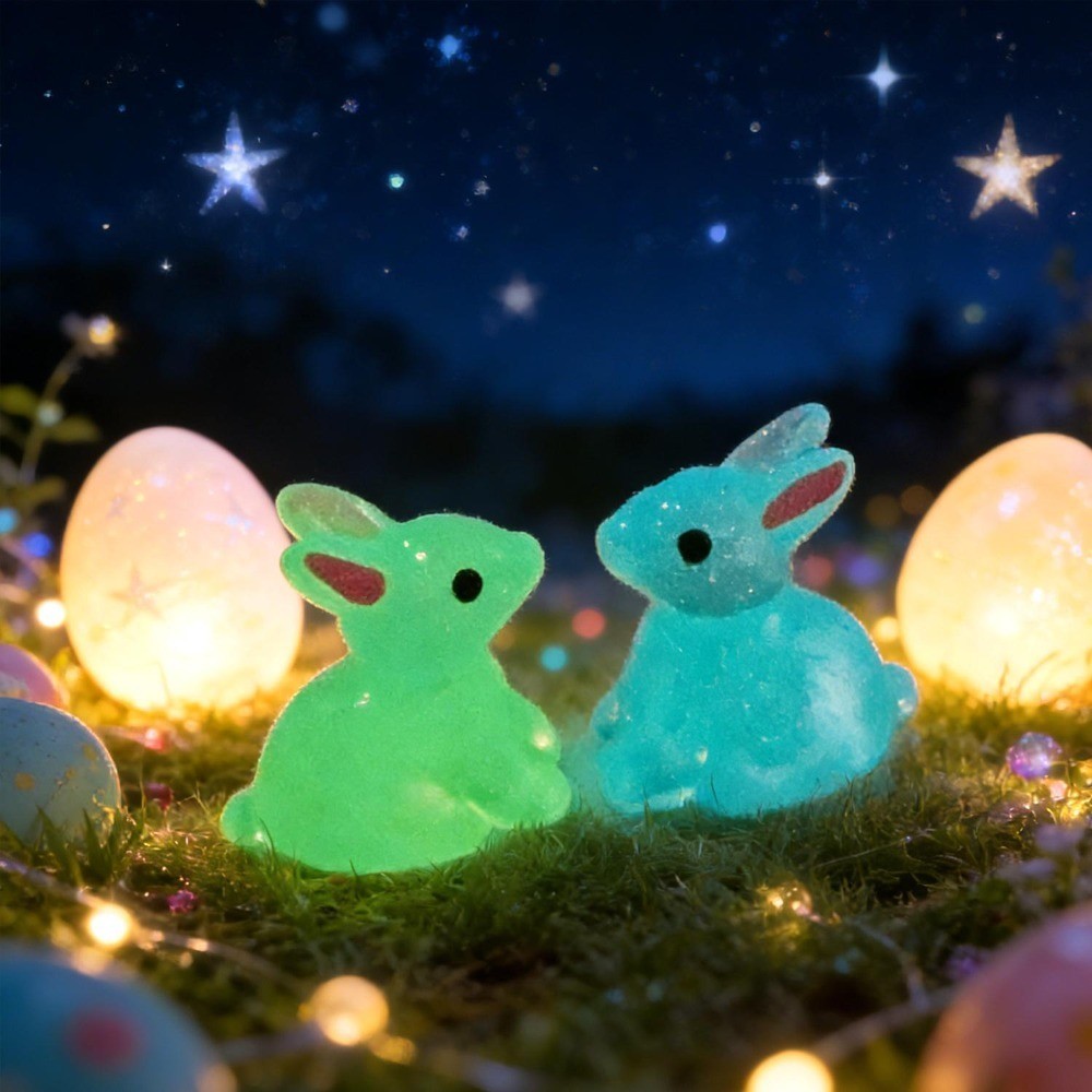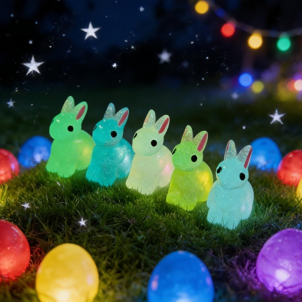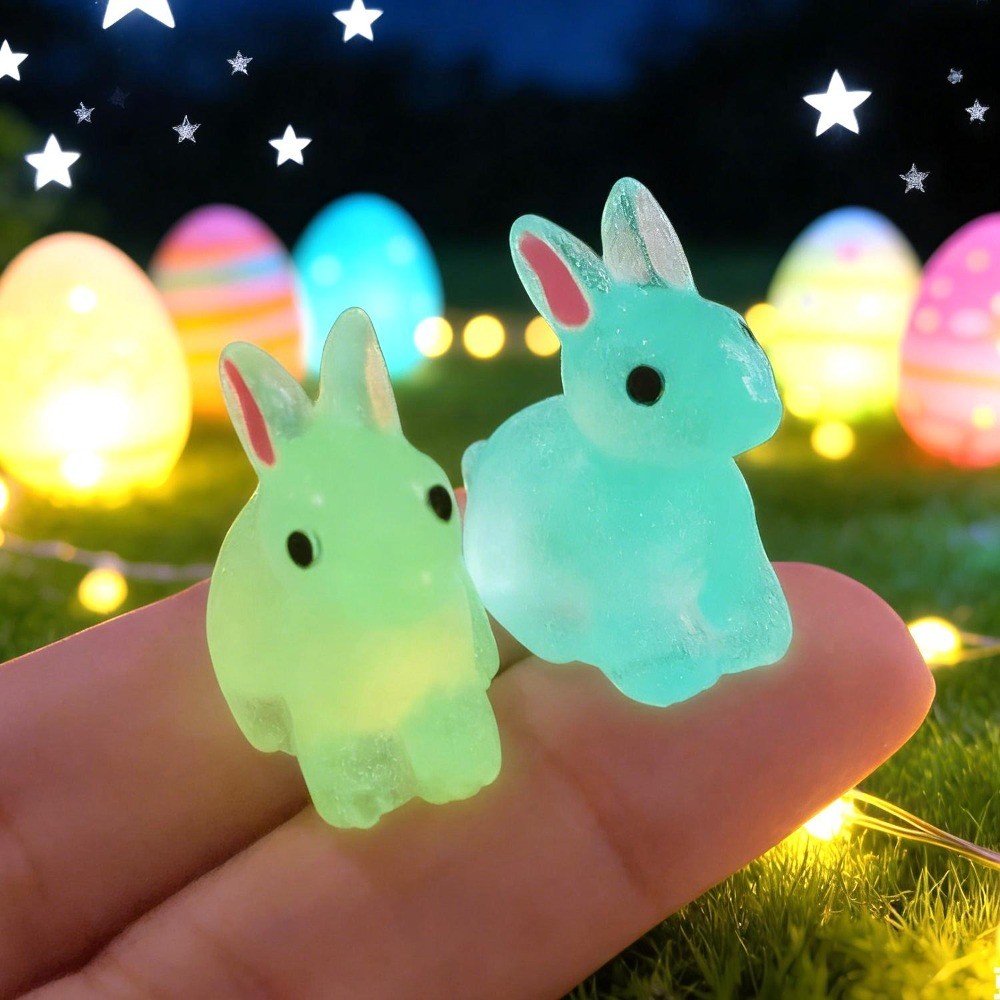 Páscoa Bonito Coelho Resina Luminosa Pequena Figura Feliz Festival De Diversão Micro Paisagem Adereços Decorativos DIY 3