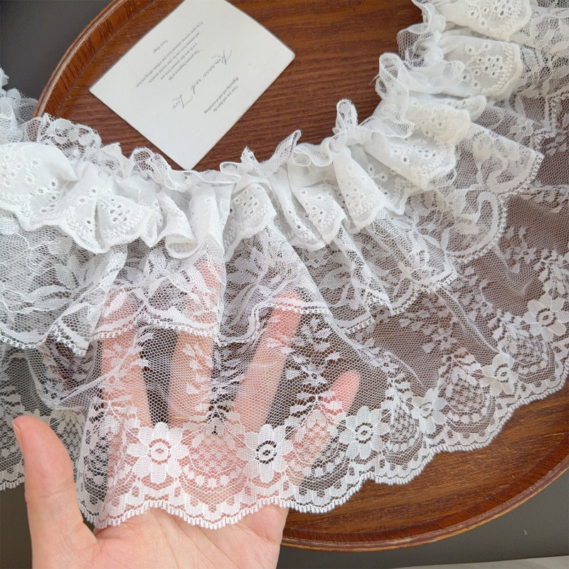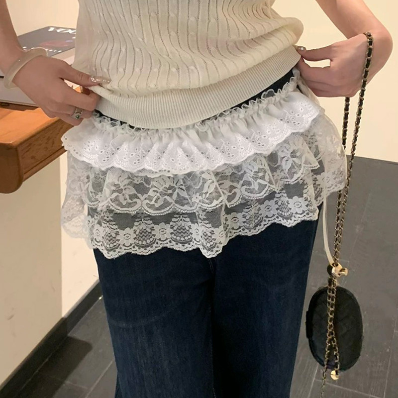 Saia Branca De Renda Com Babados De Cintura Alta-Elástica , Ajustável-Capa De Em Camadas De Verão-Curta Elegante-Acessór