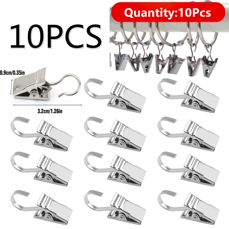 10 Pcs Clipes De Cortina De Metal Com Gancho/Multiuso De Aço Inoxidável Acessórios Resistente E Durável