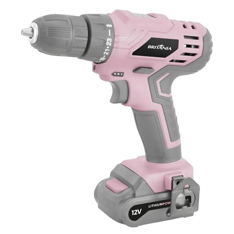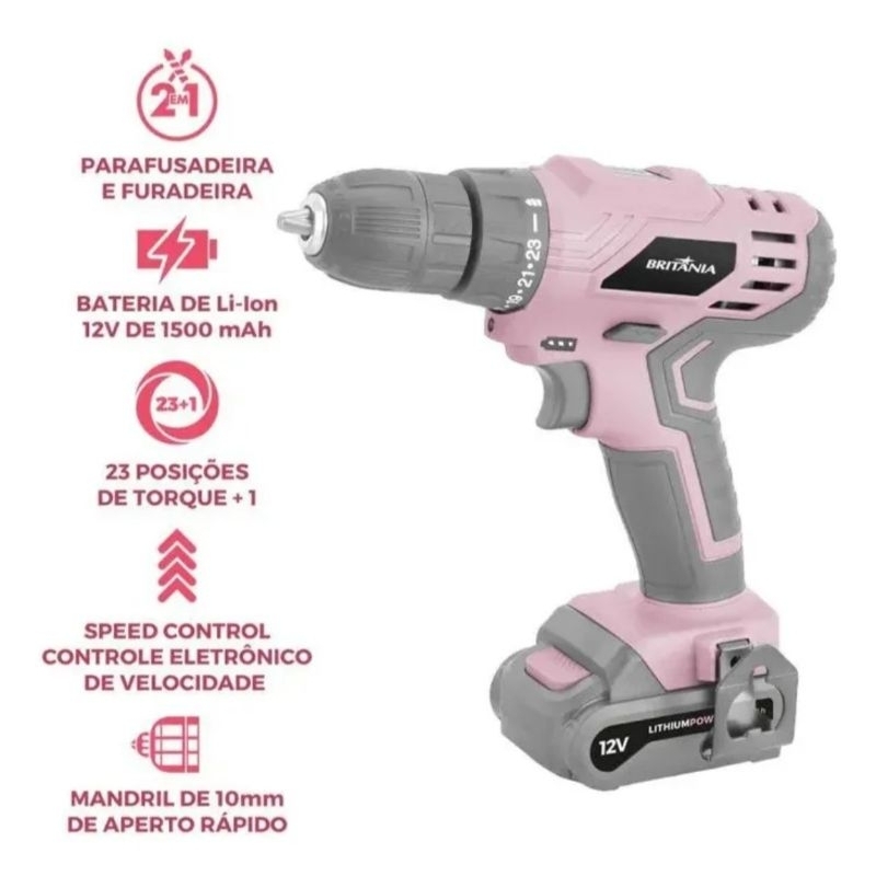 PARAFUSADEIRA SEM IMPACTO BRITÂNIA ROSA 12V COM MALETA E 15 ACESSÓRIOS‼️ ENVIO RÁPIDO‼️