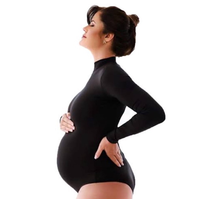 Body Ensaio Gestante Gola Alta Manga Longa Segunda Pele Em Suplex