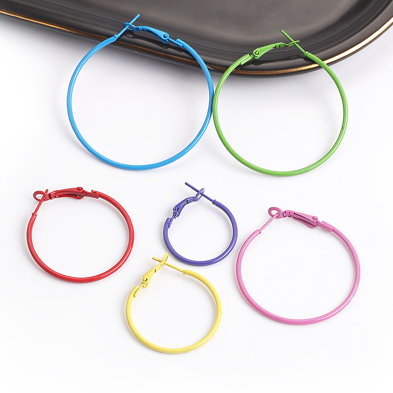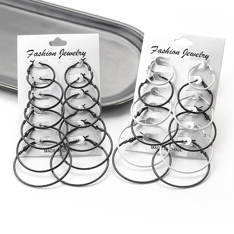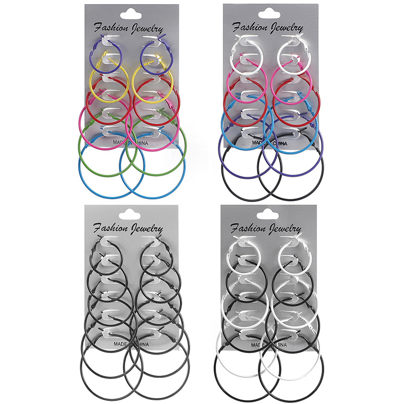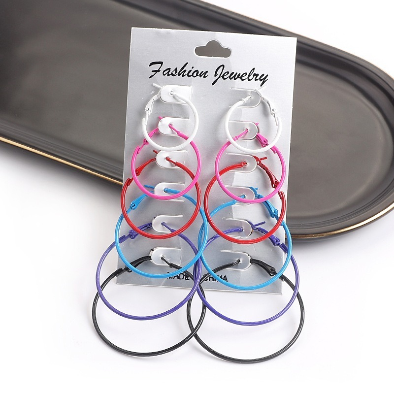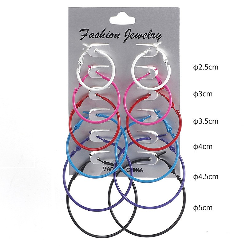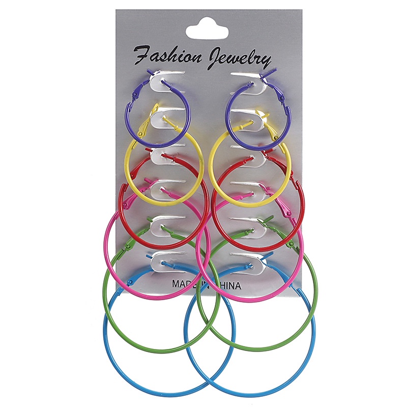 6 Pares / Conjunto Brinco Argola Colorido Estilo Punk