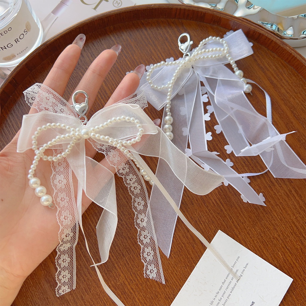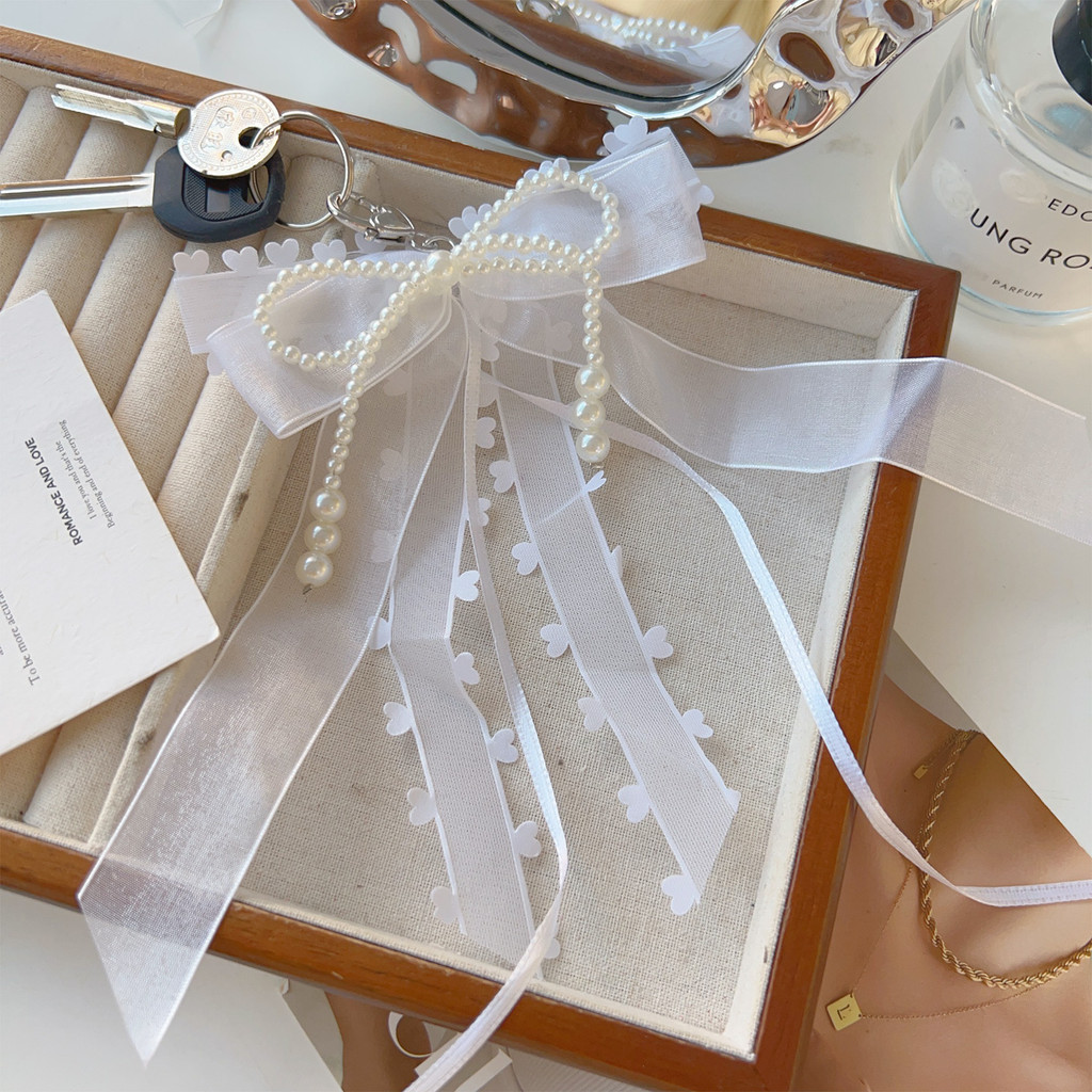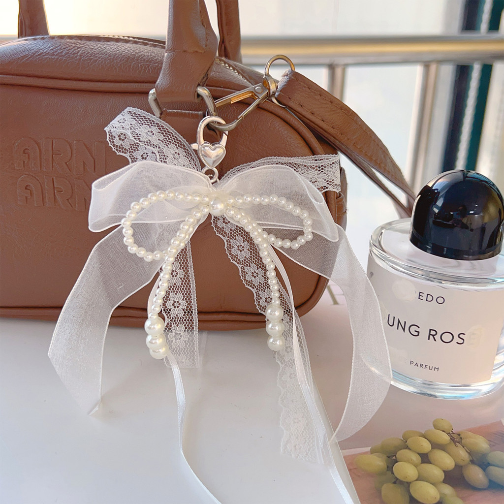 Chaveiro De Pérola Com Laço Coreano-Acessórios De Fita De Moda Doce-Fivela De Metal Bolsa Feminina Encantos Melhores Pre