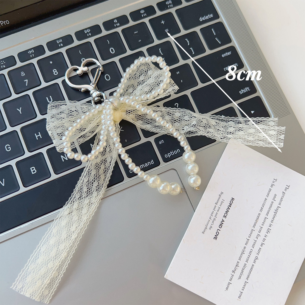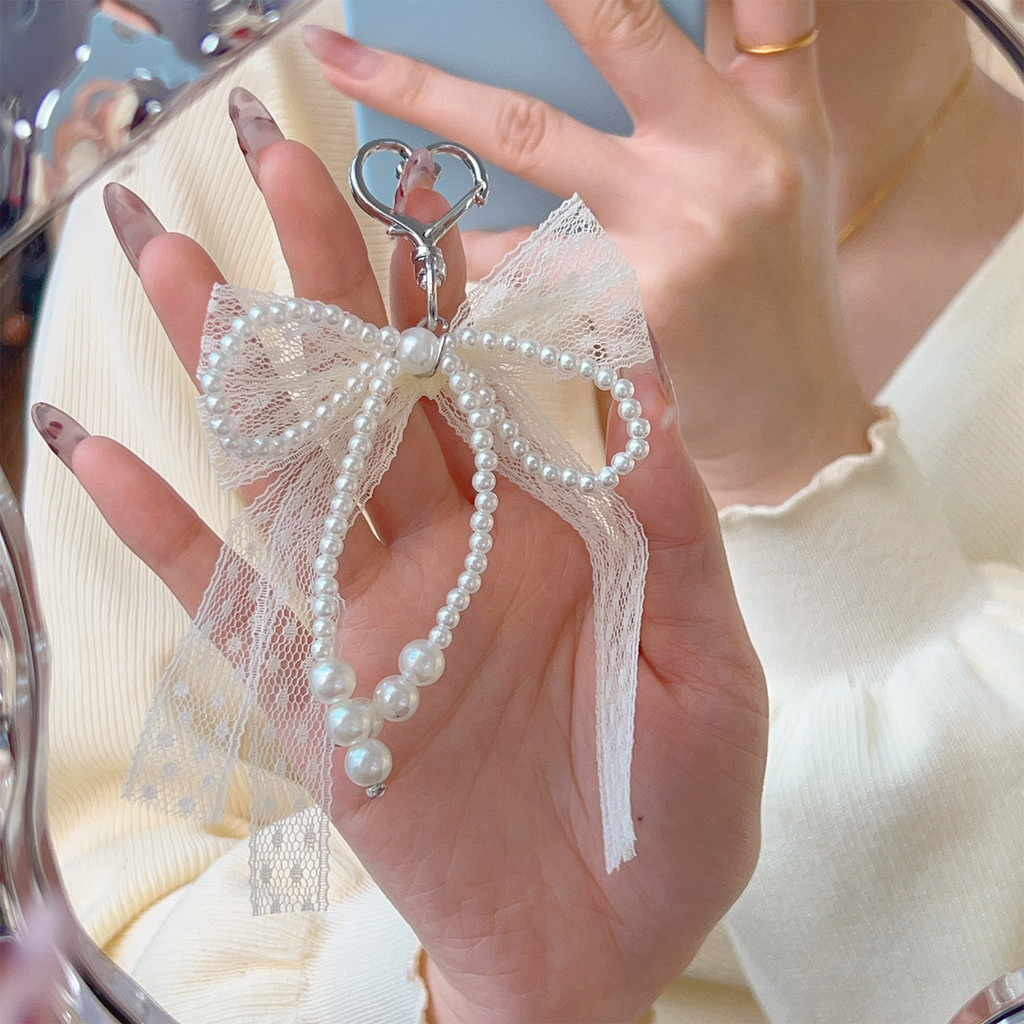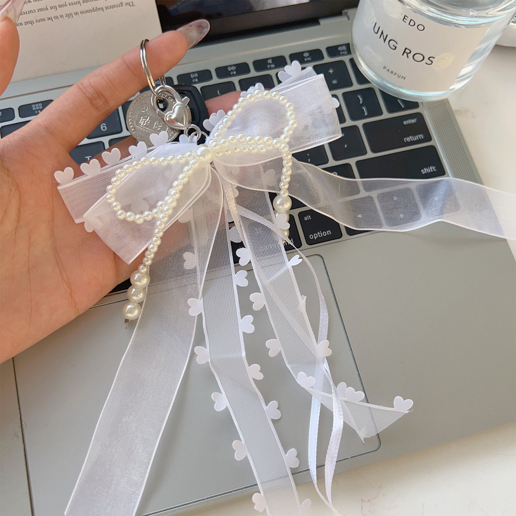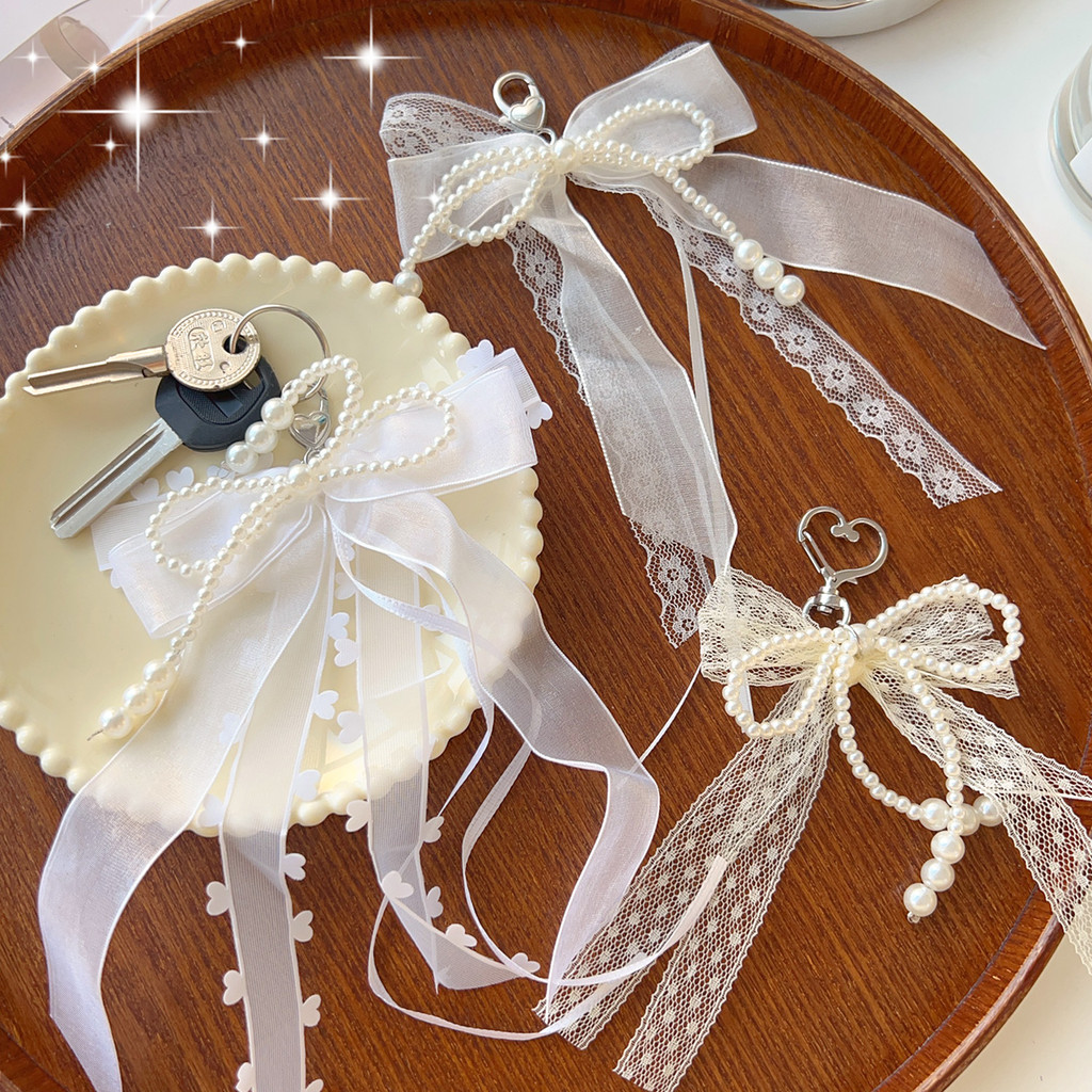 Chaveiro De Pérola Com Laço Coreano-Acessórios De Fita De Moda Doce-Fivela De Metal Bolsa Feminina Encantos Melhores Pre