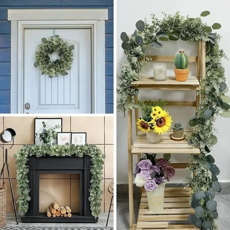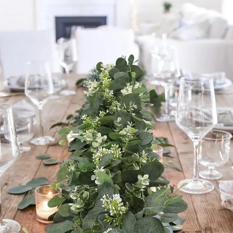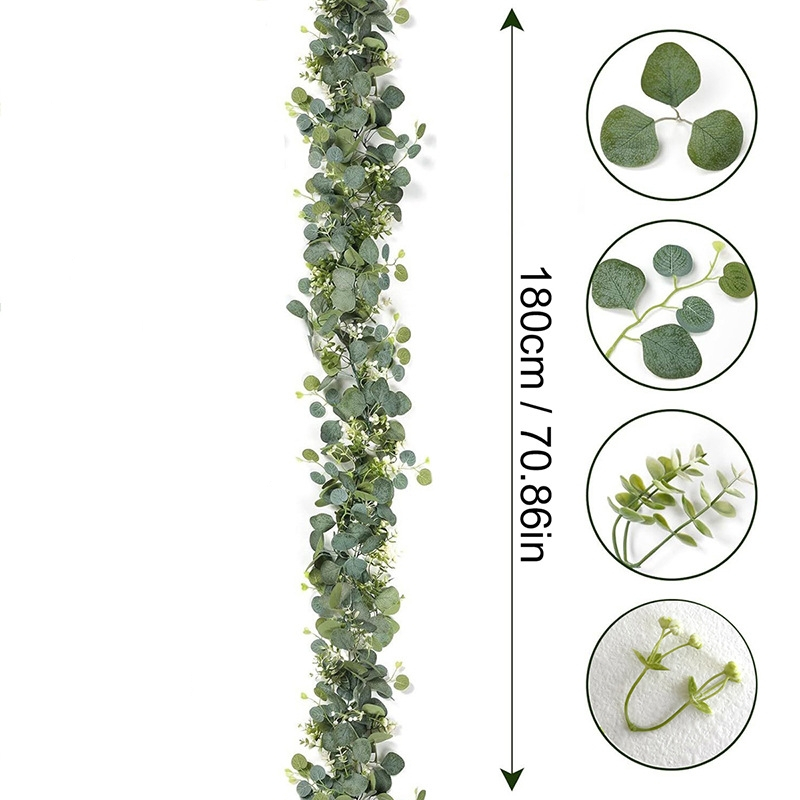 Simulação Eucalipto Rattan-Garland Artificial Greenery-Folhas De Planta Falsa-Plástico Reutilizável-Decoração De Mesa De Jantar De Jardim Para Festa Doméstica Parede De Casamento-Romântico