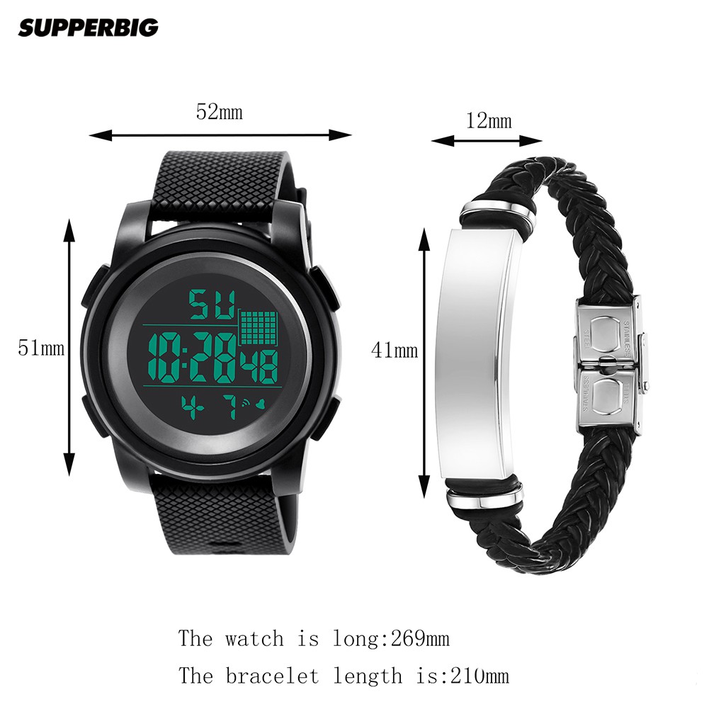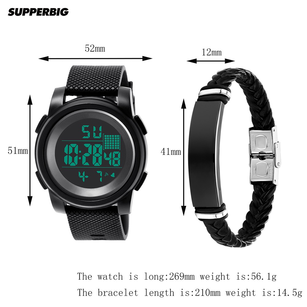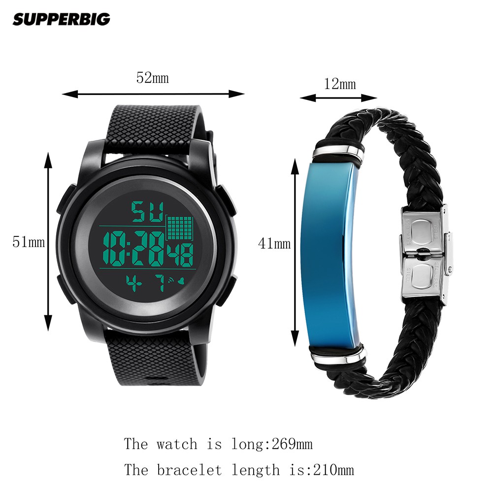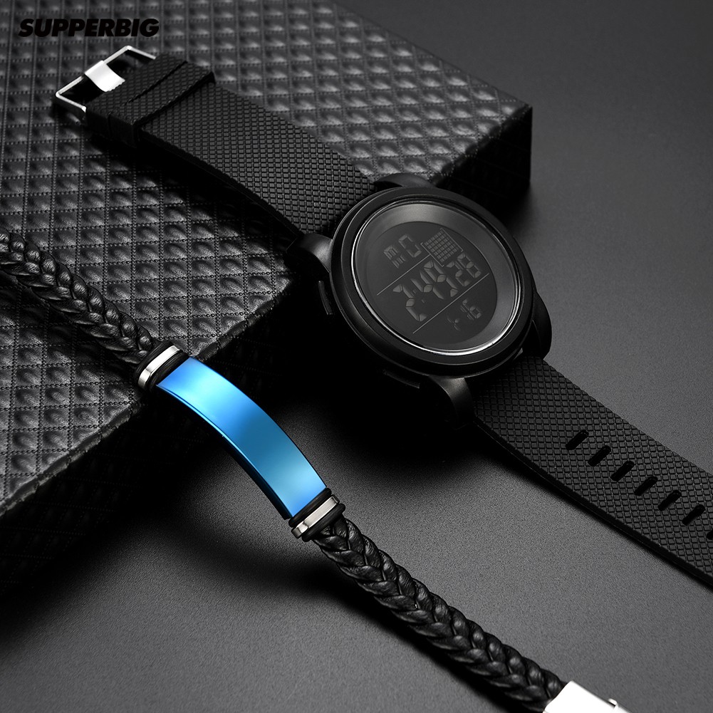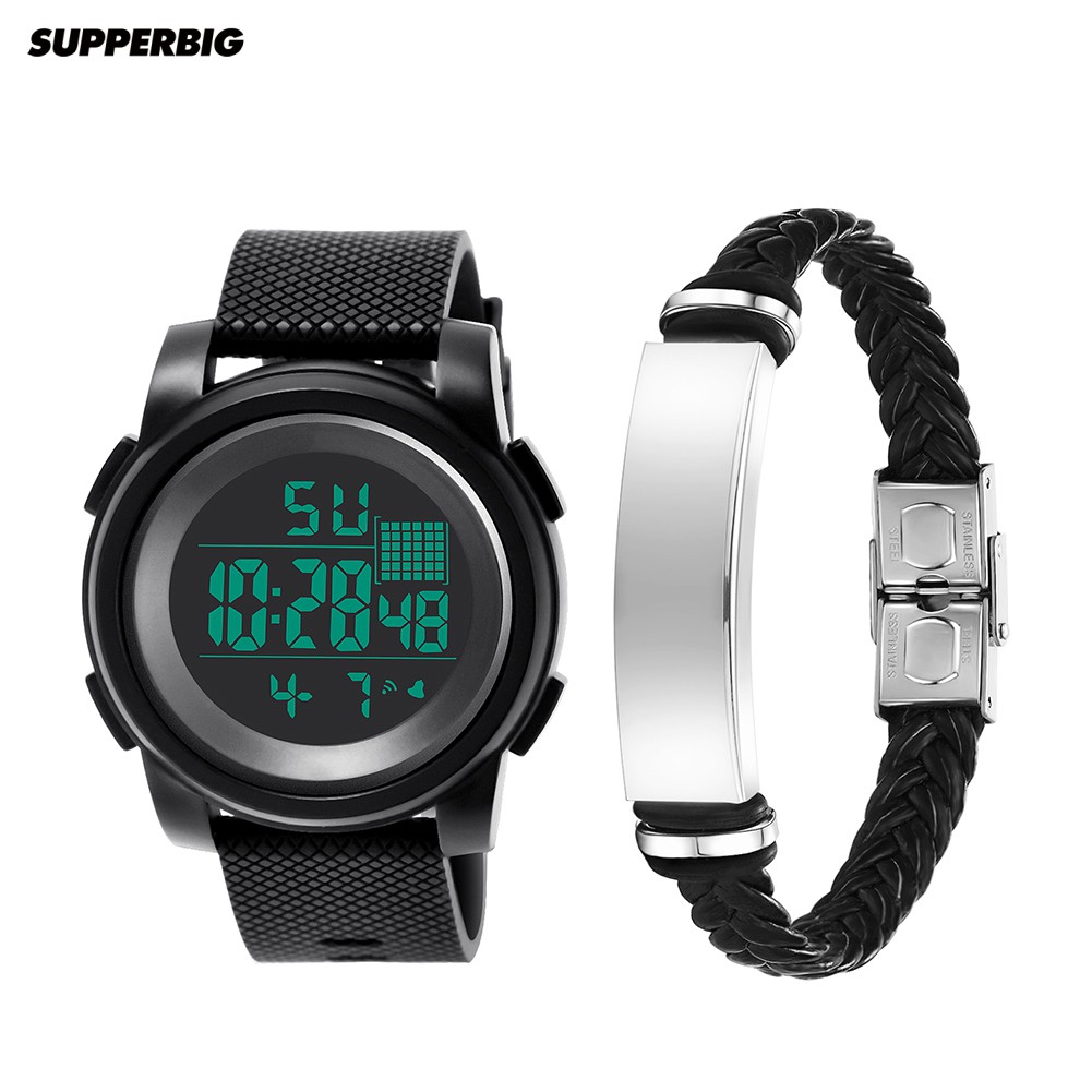 Supperbig 2Pçs Relógio de Pulso Digital Eletrônico à Prova d'Água Masculino