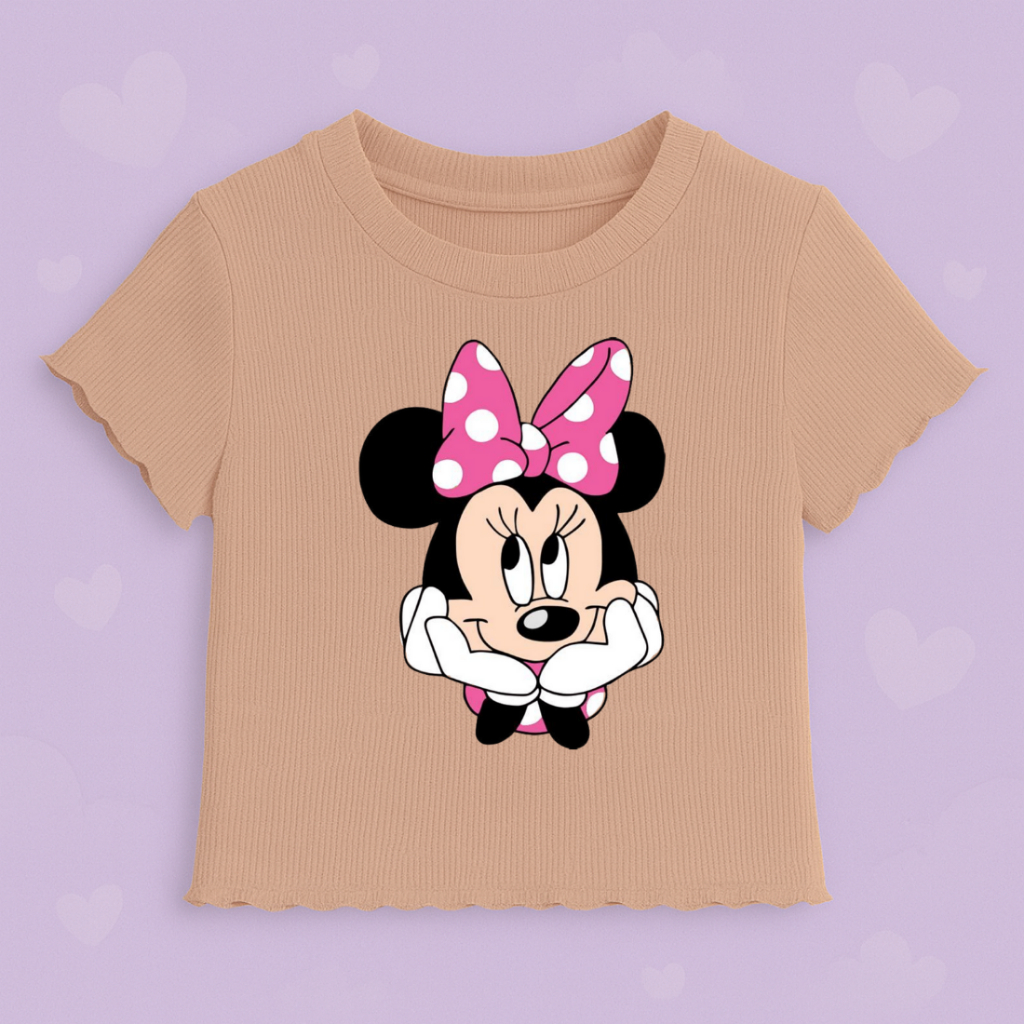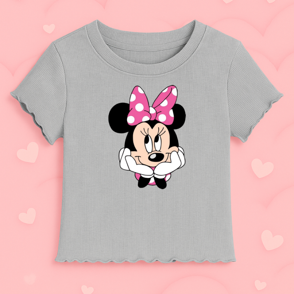 Blusinha Infantil Minnie Menina Canelada com Babado Premium Moda Juvenil