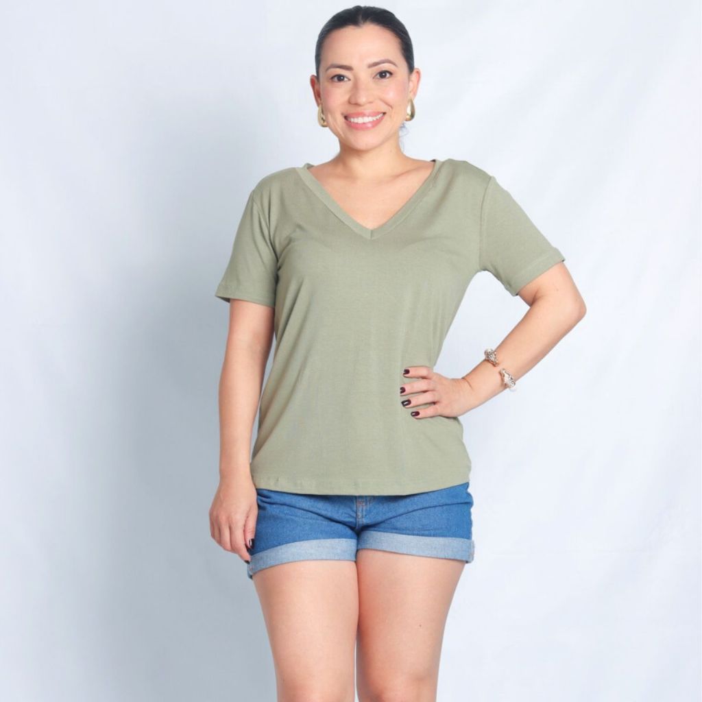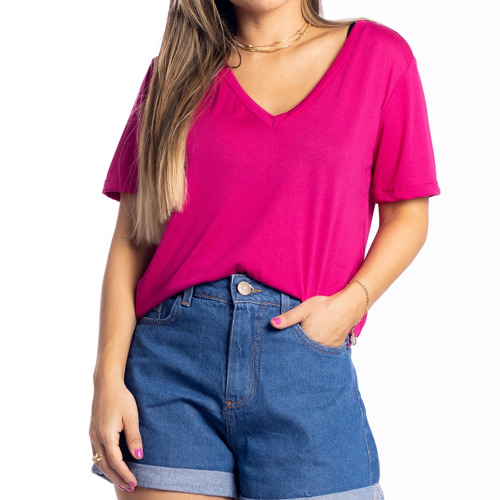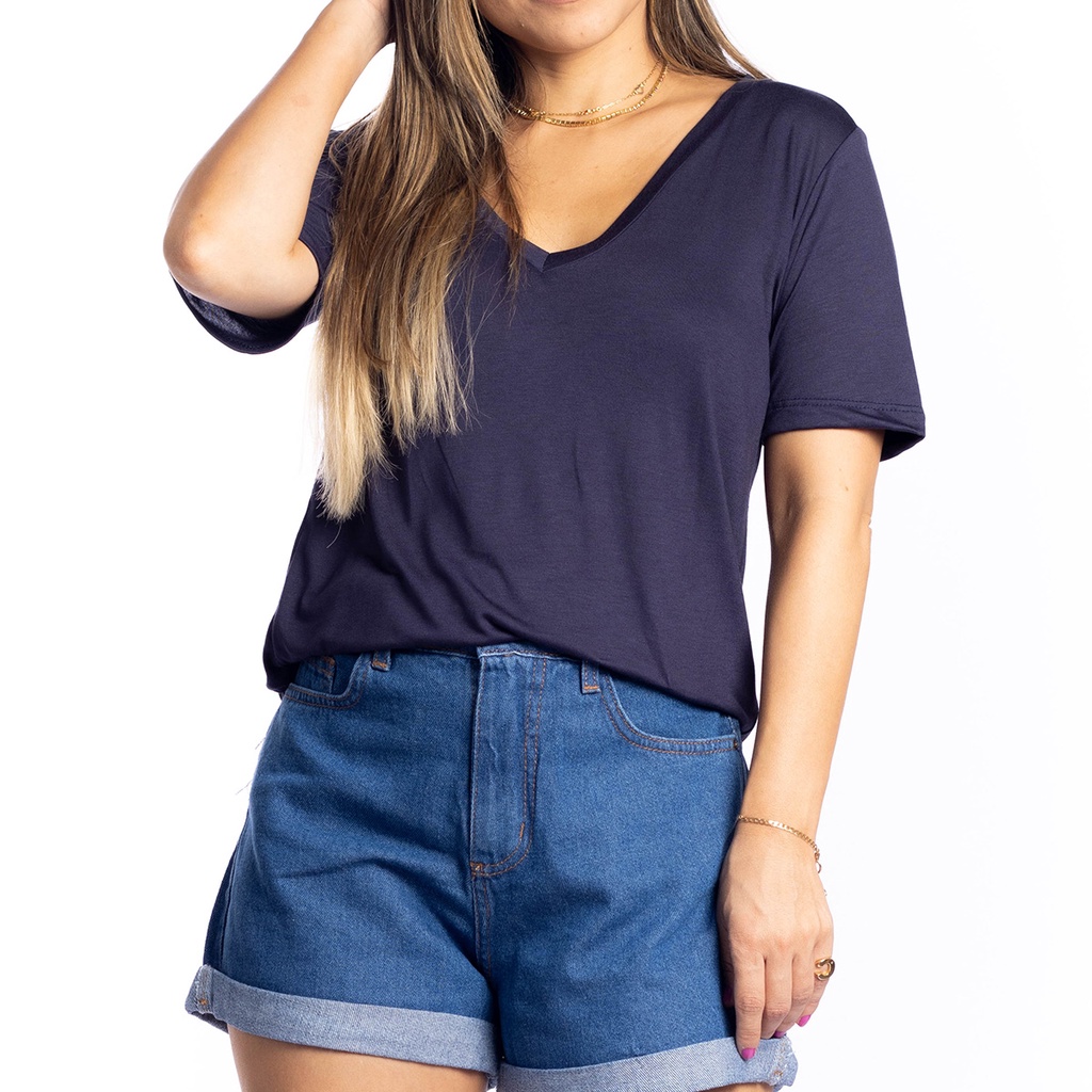 Camiseta de Malha de Viscose Gola V