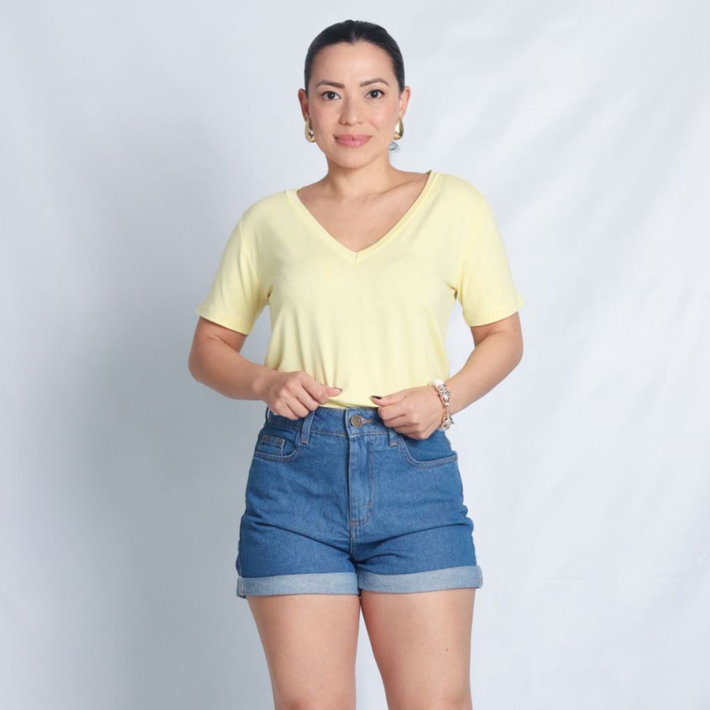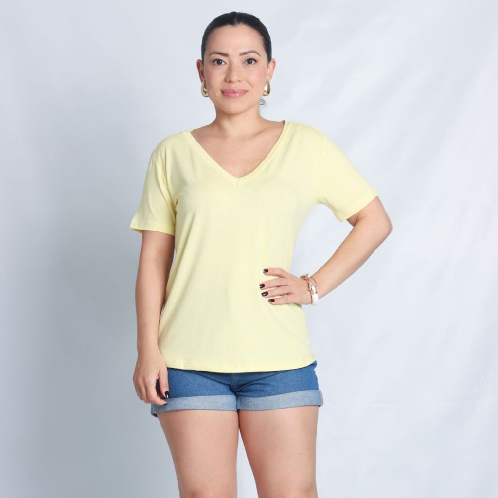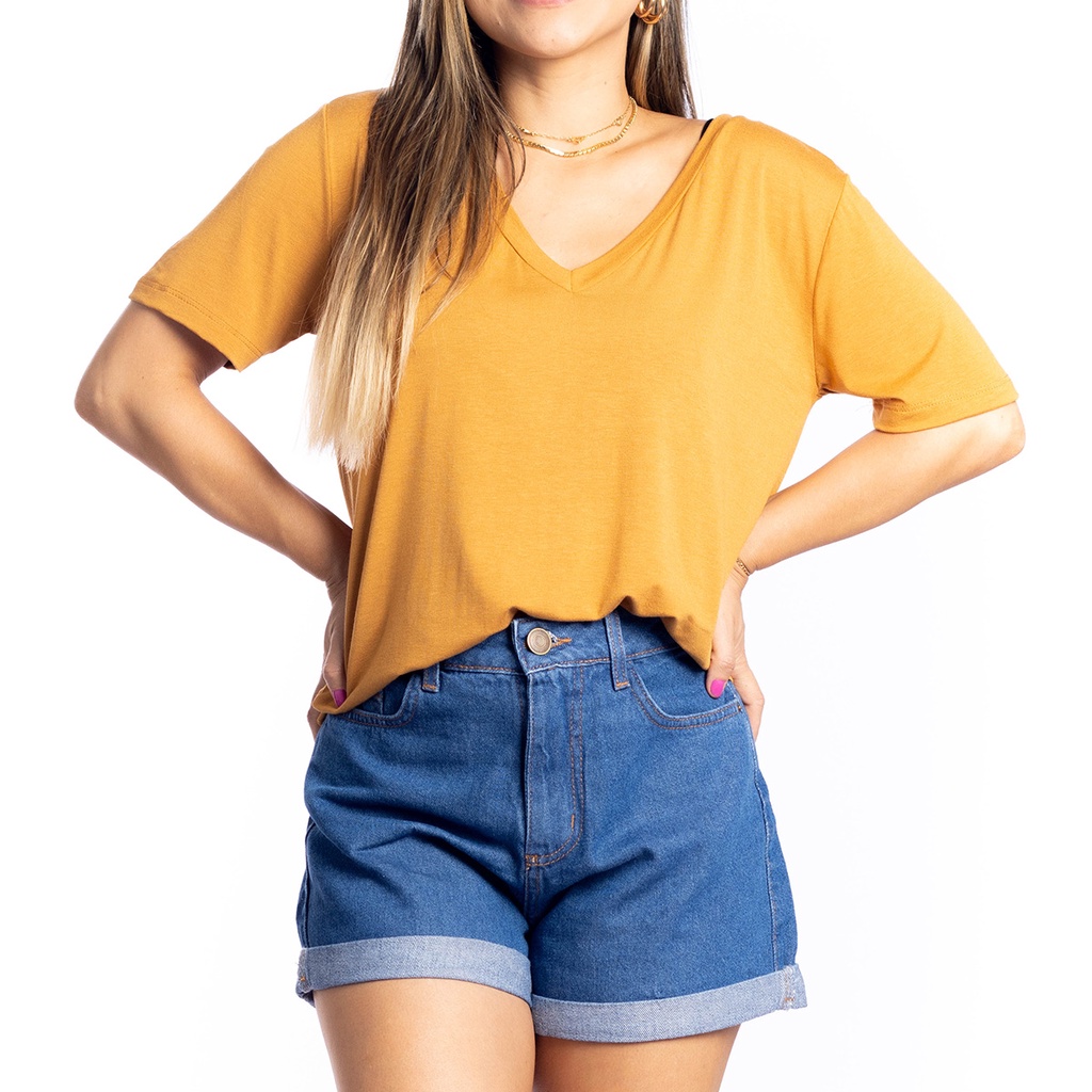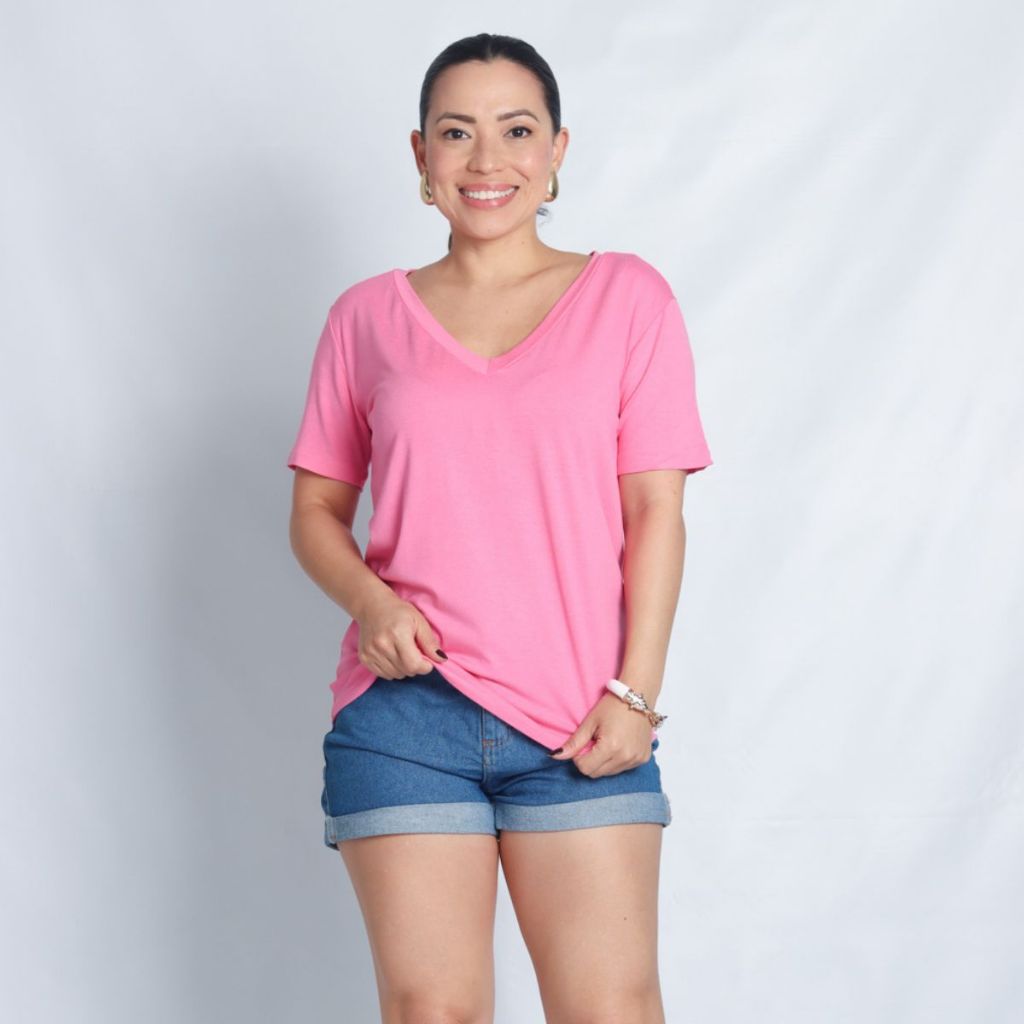 Camiseta de Malha de Viscose Gola V
