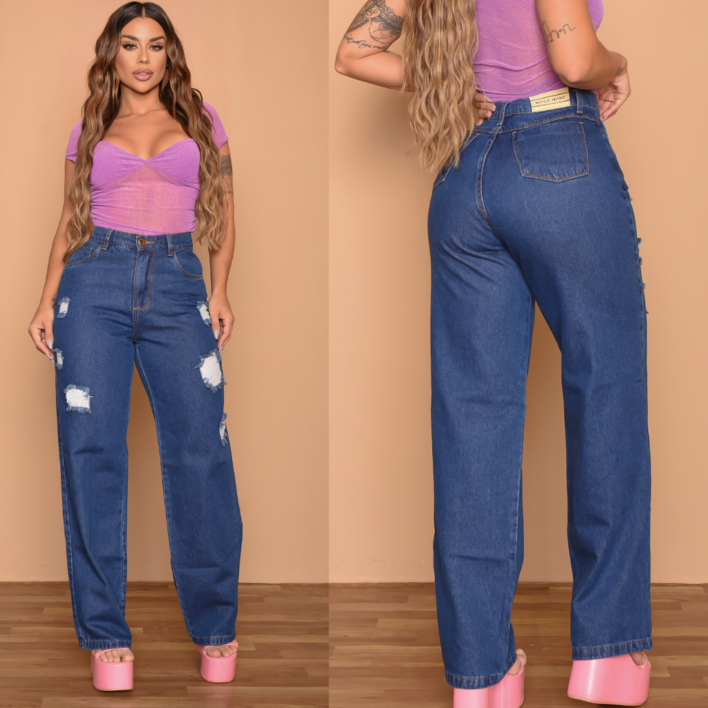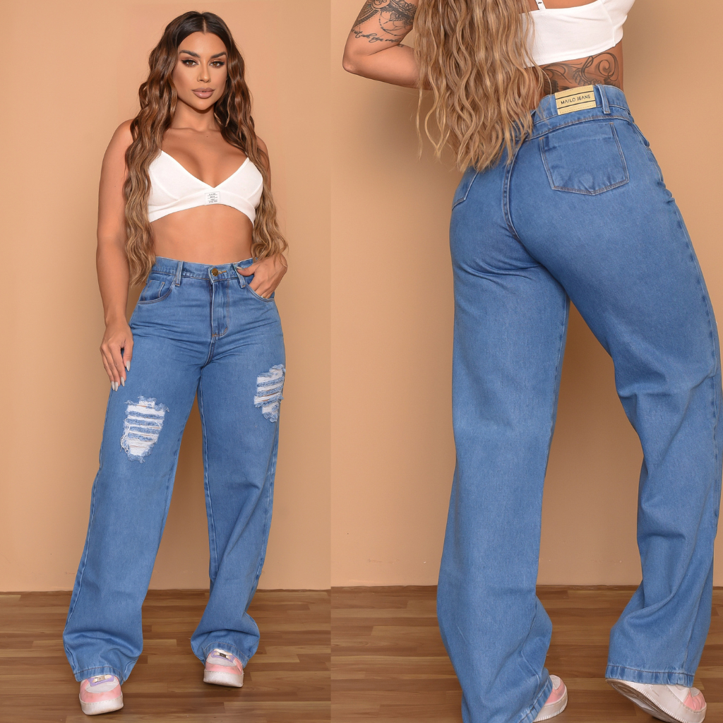 Calçca Wind Leg Calça Feminina Cargo Pantalona Cintura Alta Levanta Bumbum Wide leg