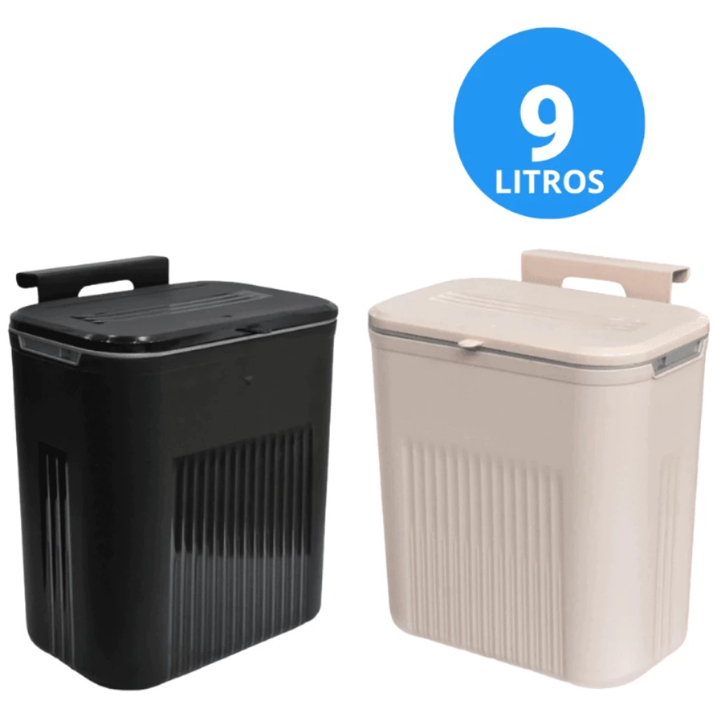 Lixeira Suspensa 9 Litros C/ Tampa E Suporte Alto De Adesivo PARA PENDURAR Cozinha E Banheiro Quarto