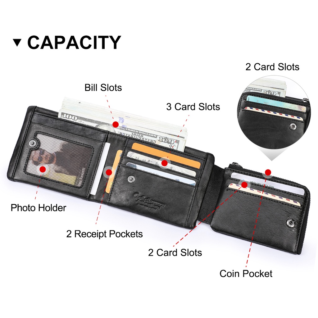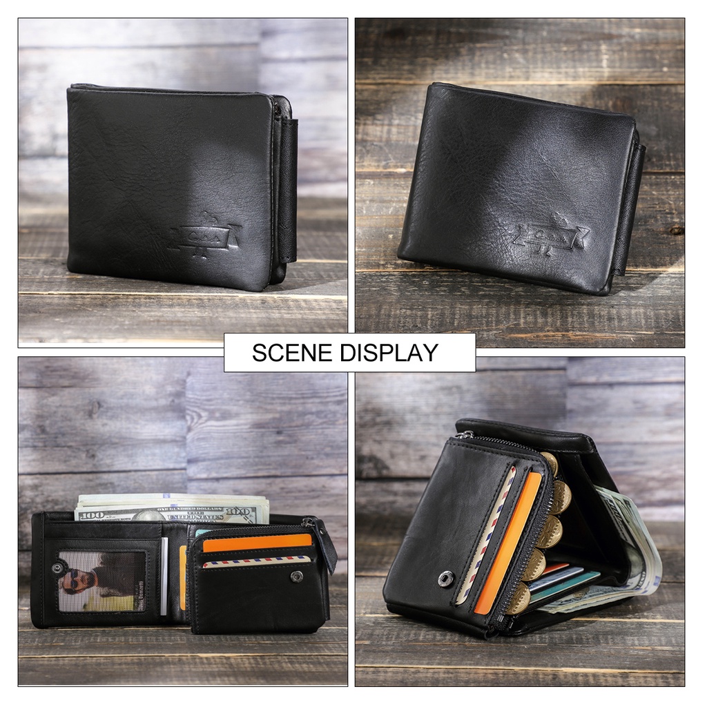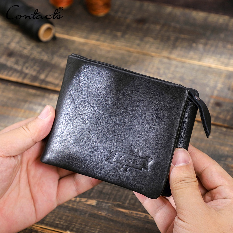 CONTACT'S Carteiras De Couro Genuíno Crazy Horse RetroTrifold Moeda Do Bolso Bolsa Carteira Masculina