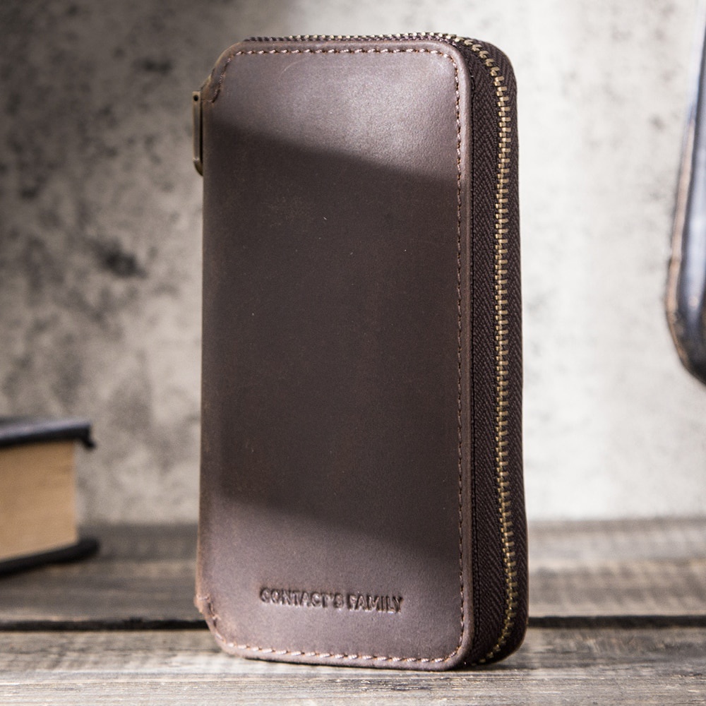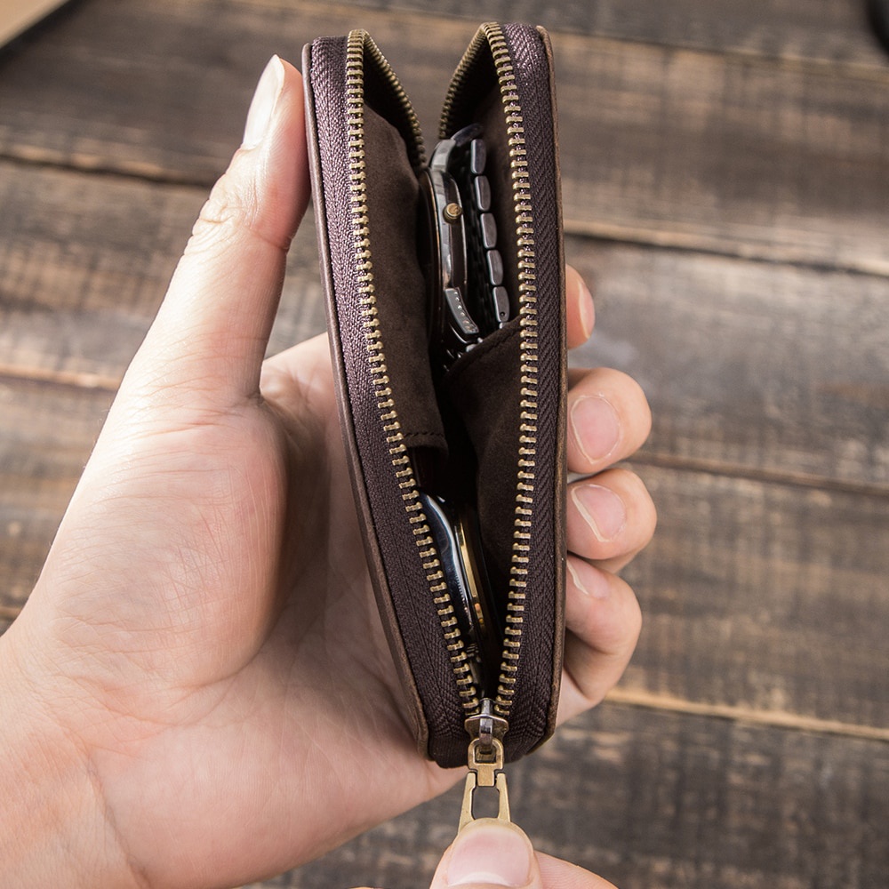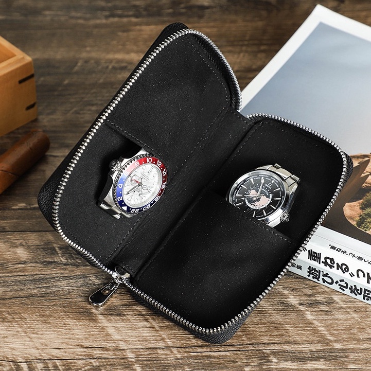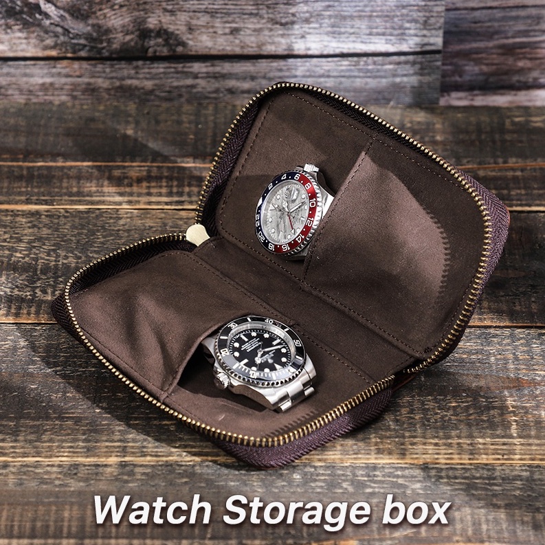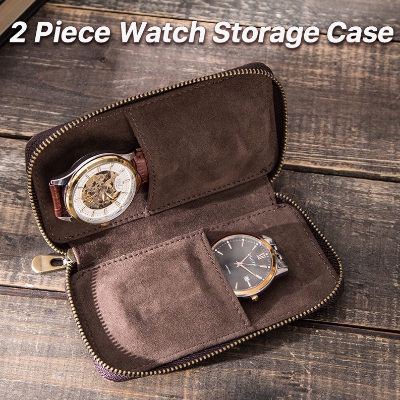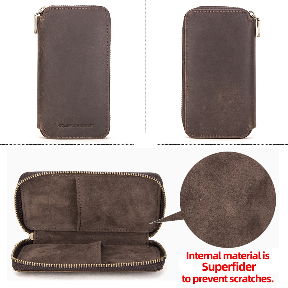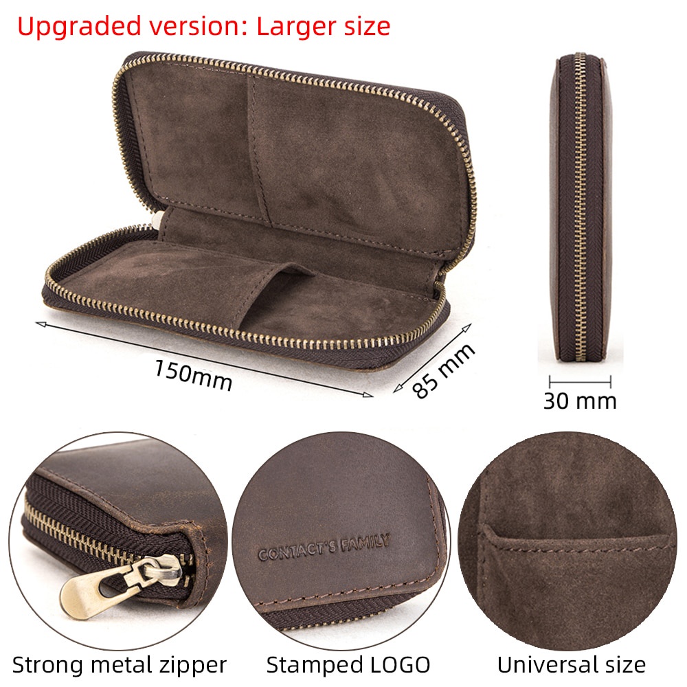 CONTACT'S FAMILYA Porta Bolsas De Relógio Duplo Vintage Couro De Vaca Zipper Travel Watch Display Box Organizador De Armazenamento