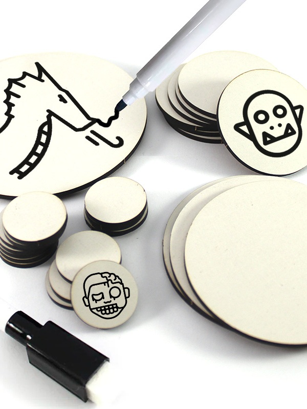 Kit 27 Tokens Riscáveis + Caneta - Tamanhos Variados - 25mm a 100mm - Mais RPG