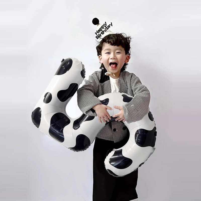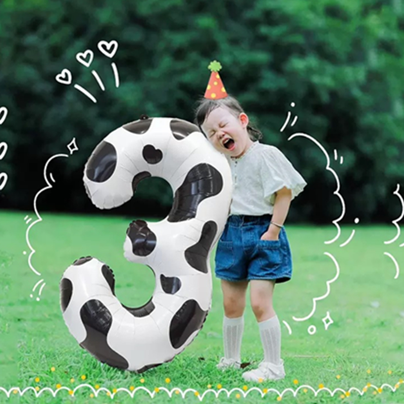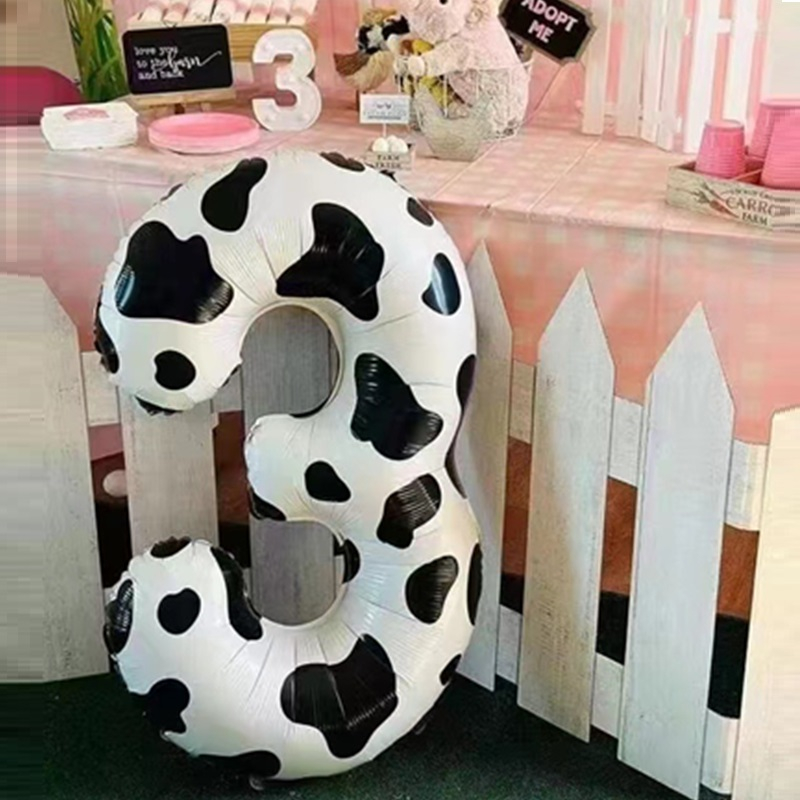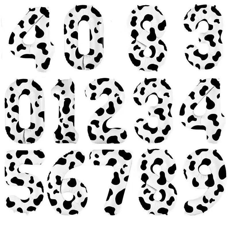 40 Polegadas Vaca Impressão 1 2 3 4 5 6 7 8 9 0 Número Digital Balão Garoto Garota Fazenda Tema Festa De Aniversário Decoração