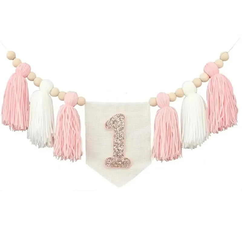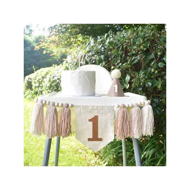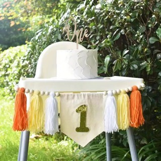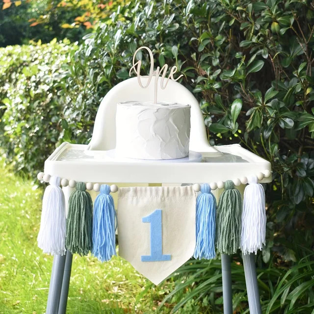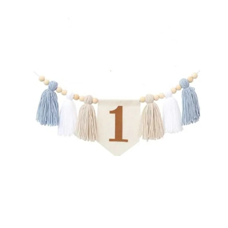 1PC 1a Criança Aniversário Cadeira De Garland One Party Banner Blue Cream Backdrops Decoração Burlap First Flag Hanging