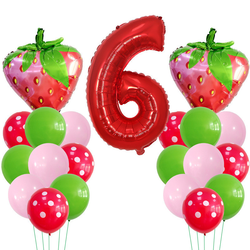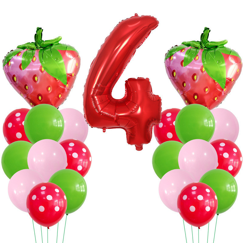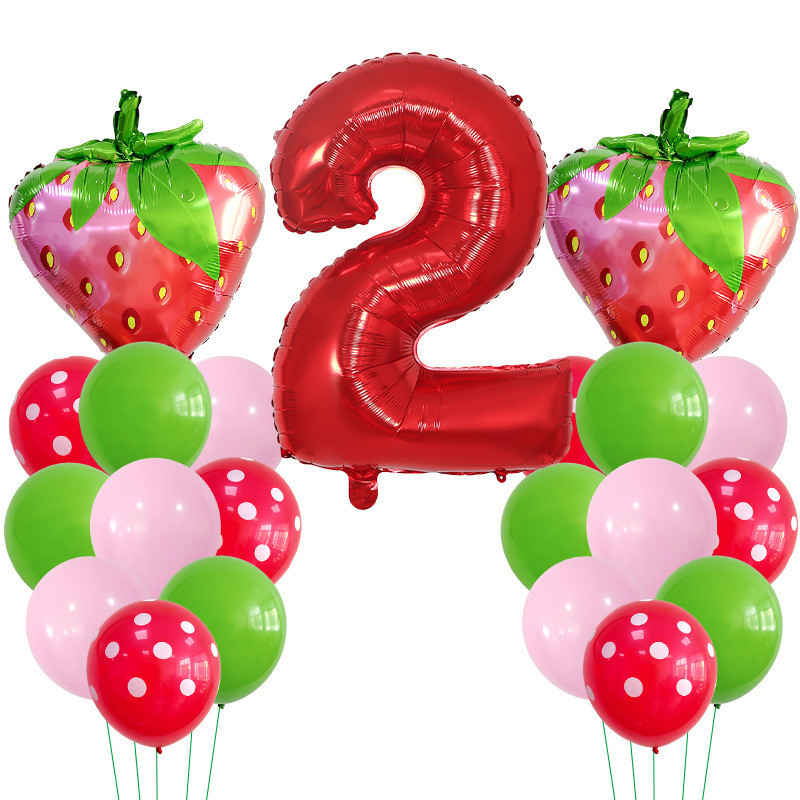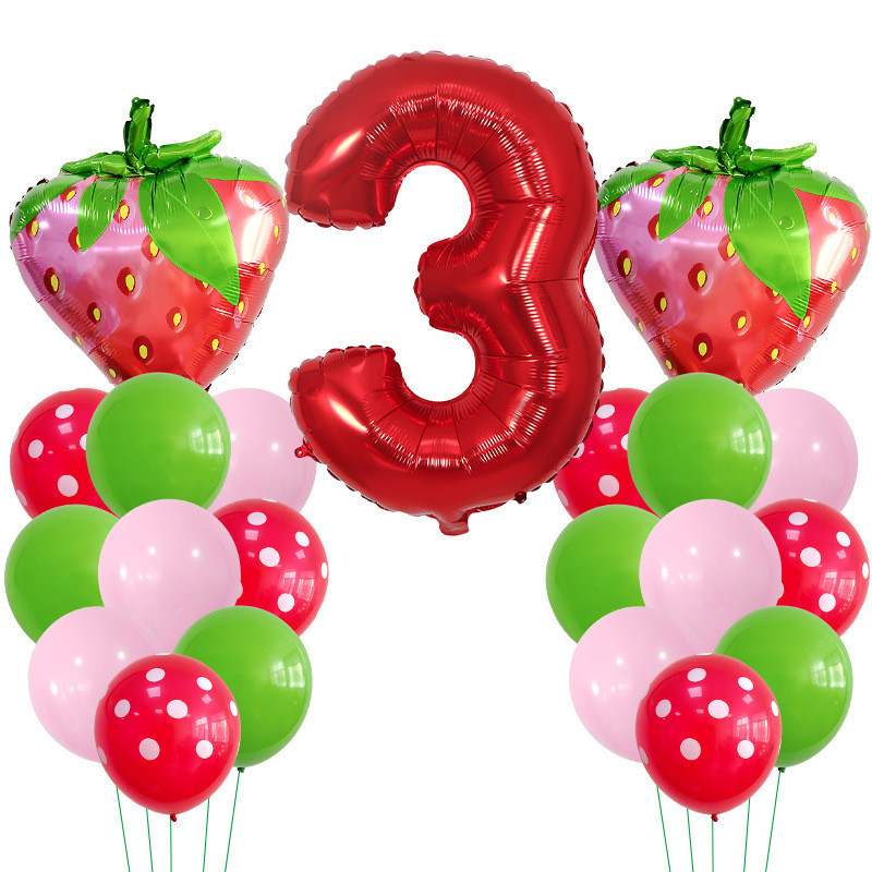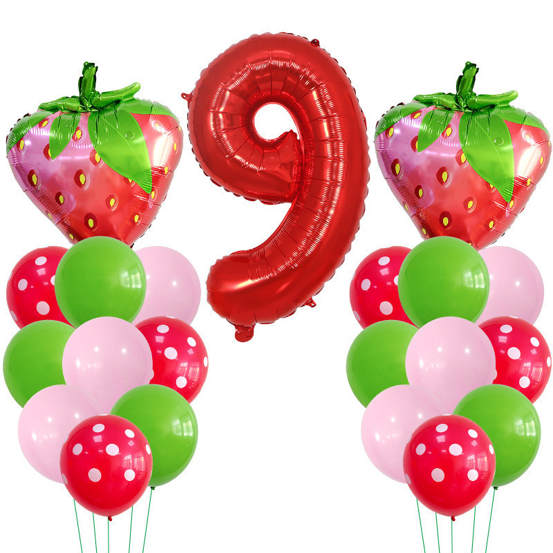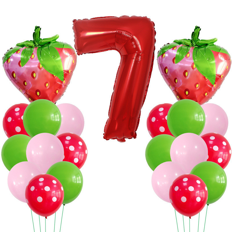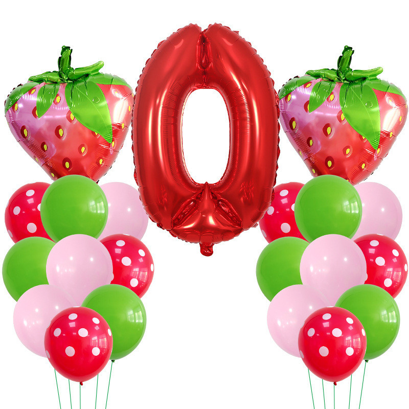30 Polegadas Número Vermelho Balões De Morango Bouquent 1 2 3 4 5 6 7 8 9 Frutas Kids