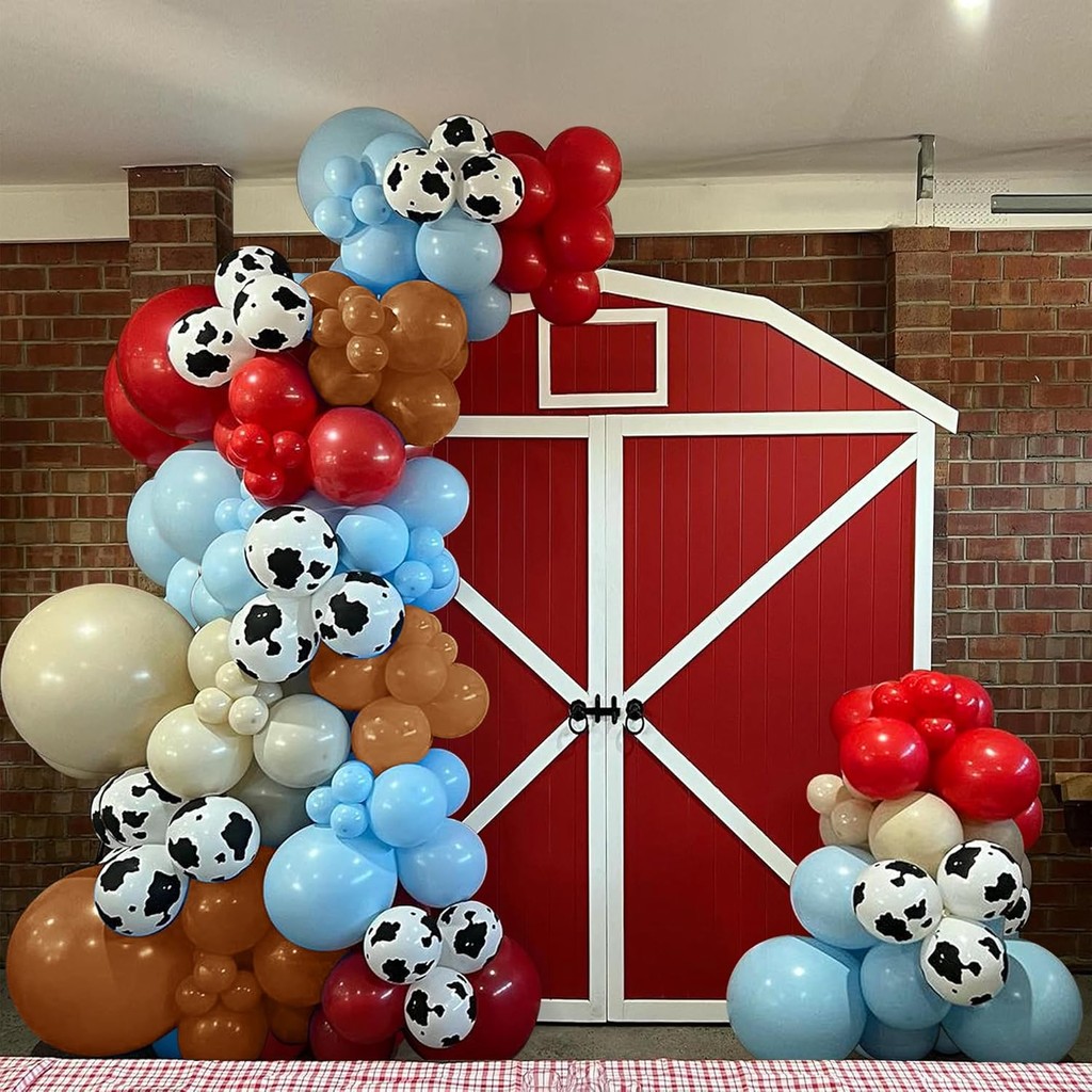 158 PCS Vermelho Azul Vaca Balões Arco Garland Kit Decorações De Festa De Para Chá De Bebê Aniversário Fazenda Tema Ocid