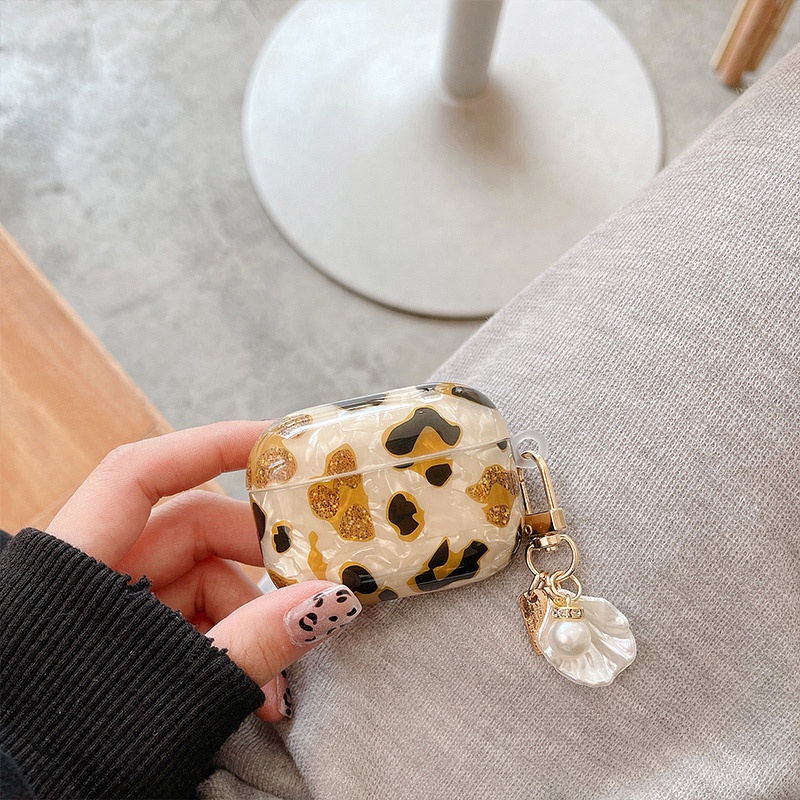 Capa Dura De Proteção Para Fone De Ouvido Leopard Shell De Luxo Com Cordão De Pérola Token Usado AirPods 1 2 3 Pro
