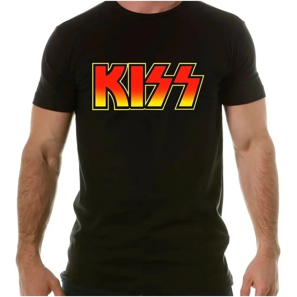 Camiseta Banda Kiss Logo Na Frente 100% Algodão Fio 30.1 Top Rock Promoção