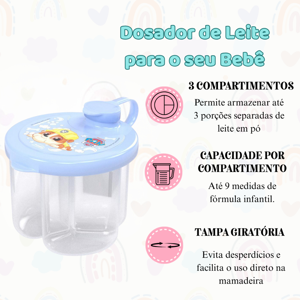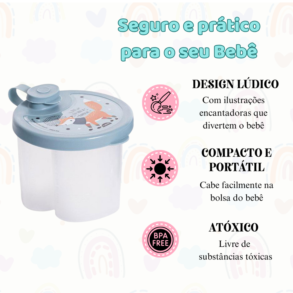 Porta Leite em Pó Fórmula Infantil 9 Porções Dosador 3 Divisórias