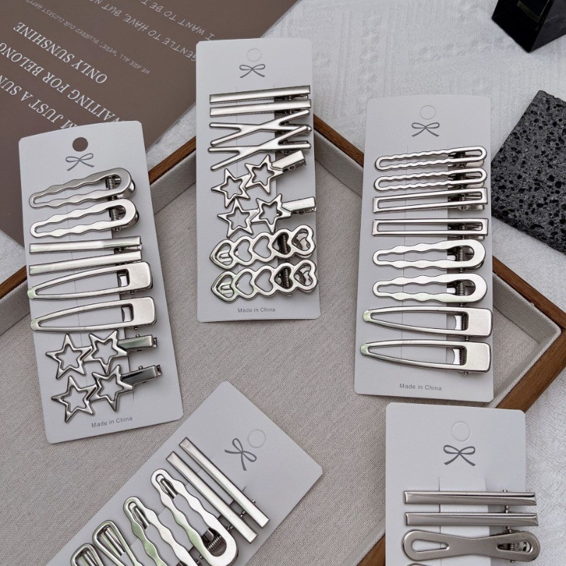 3/8 Pçs Prata Metal Estrela Amor Baseado Hairpin Feminino Estudante Acessórios De Cabelo Presente