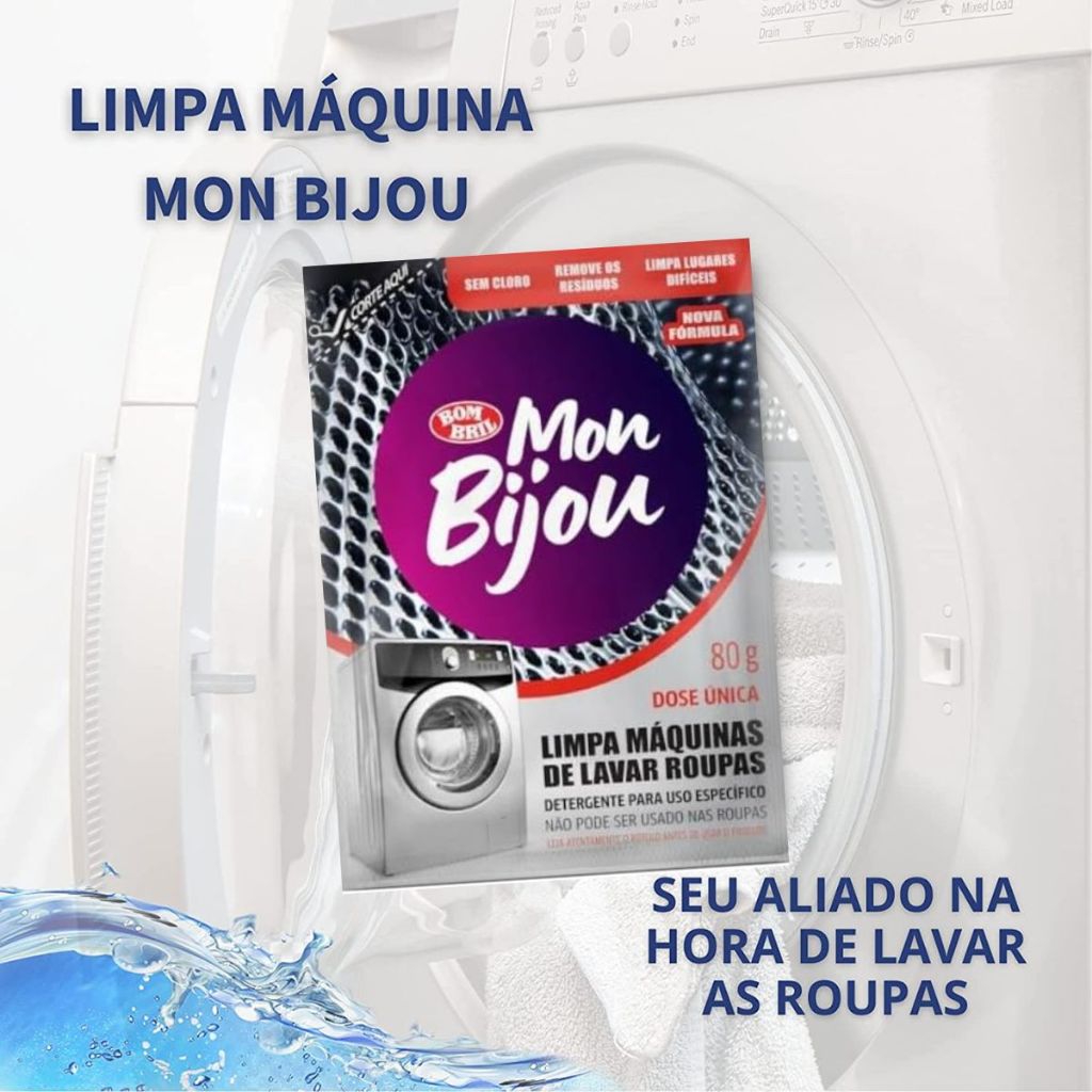 Kit com 10 unid - Mon Bijou Limpa Máquinas Lavar Roupa Frontal e Abertura Superior 80g Combate ao Maus Odores