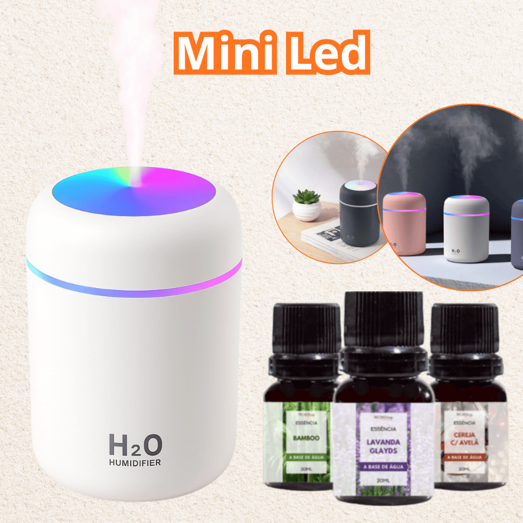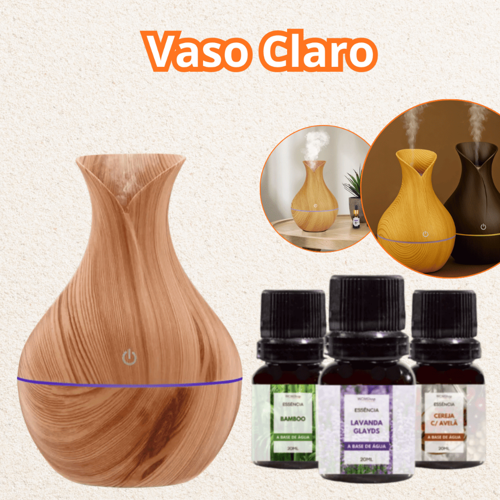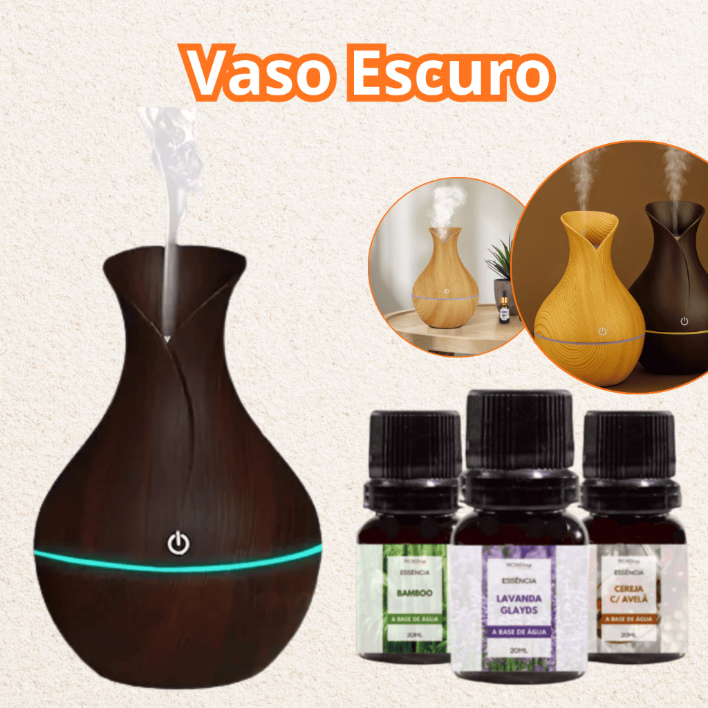 Kit Umidificador De Ar + 3 Essências 10ml | Difusor Aromatizador Vaso Escolha Seu Modelo Atomizador