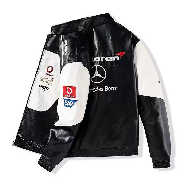 F1 bordado jaqueta de corrida jaqueta de couro Retro plutônio americano motocicleta jaqueta All-Match masculino feminino