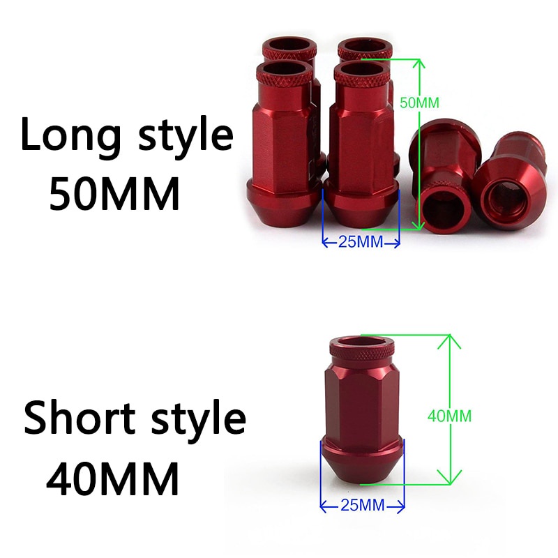 20 Peças/set Spec Racing Liga De Alumínio Roda Lug Porcas Parafuso M12x1.5/1.25 Comprimento 50mm/40mm Para Carros 95 %
