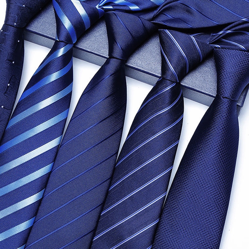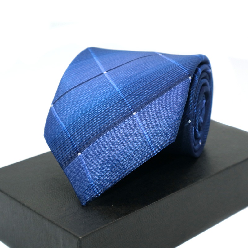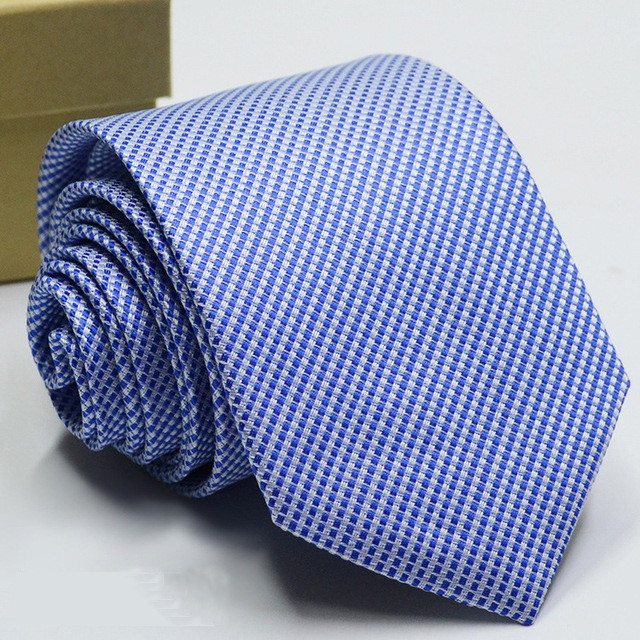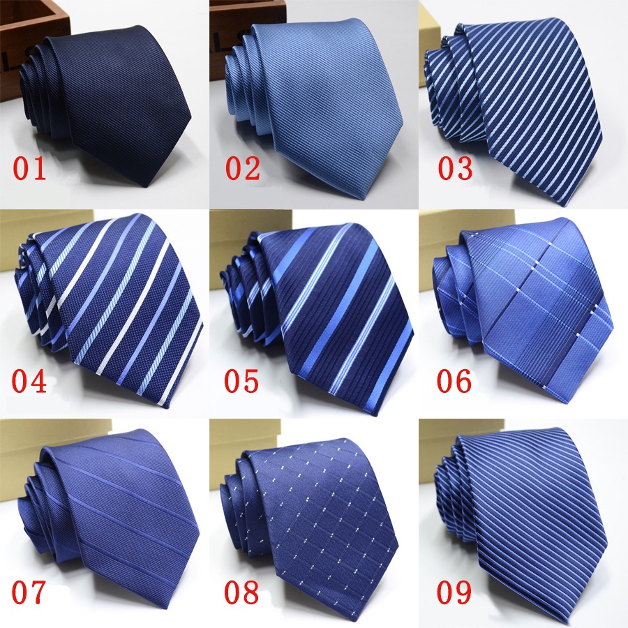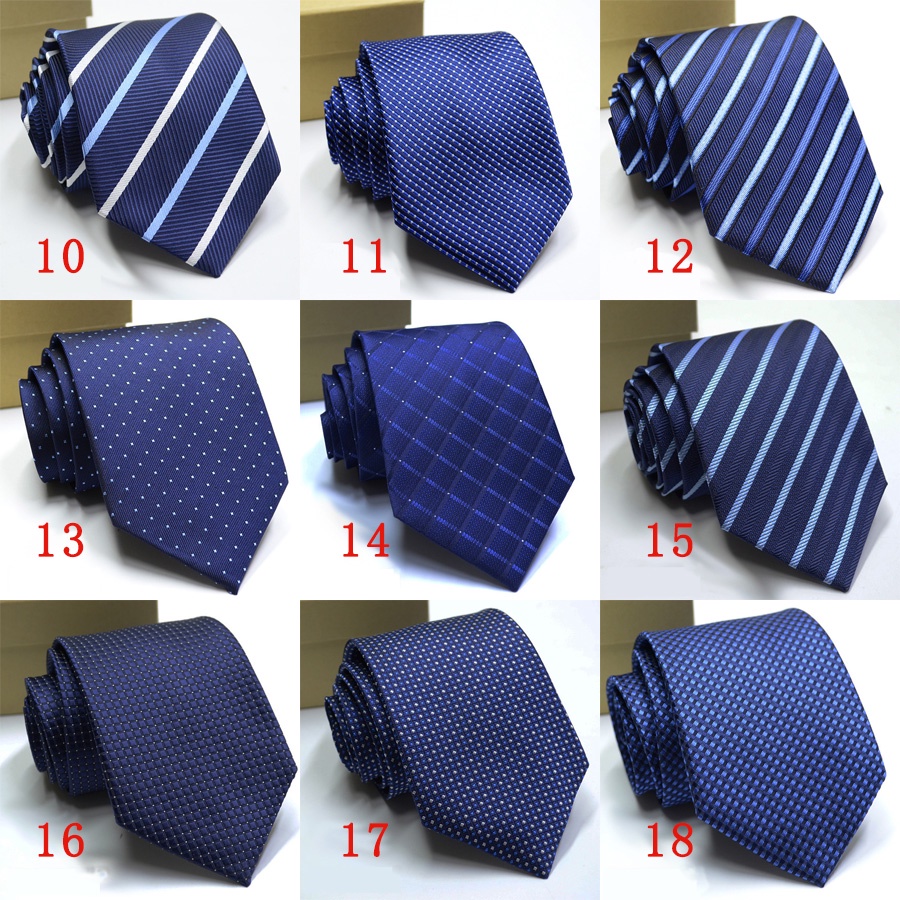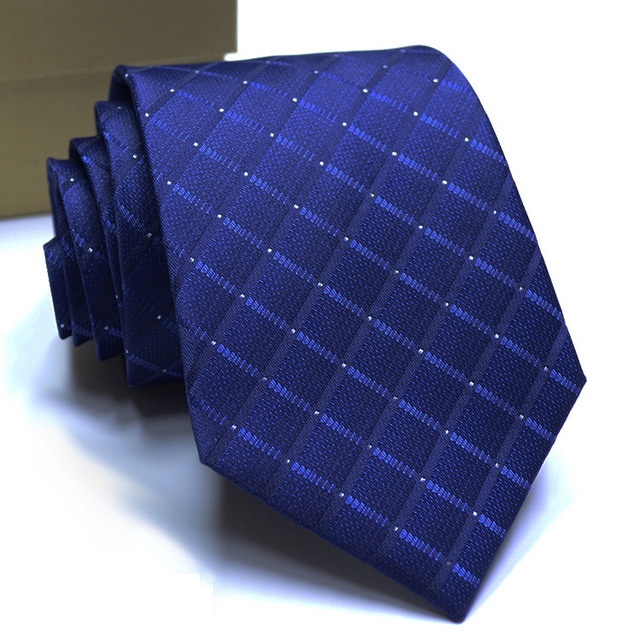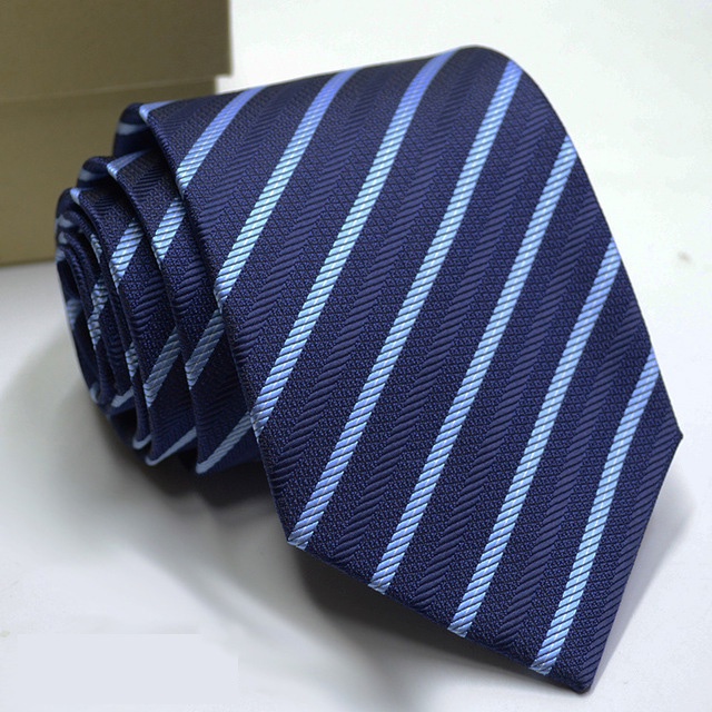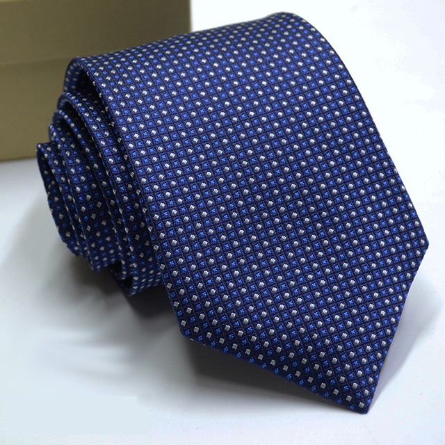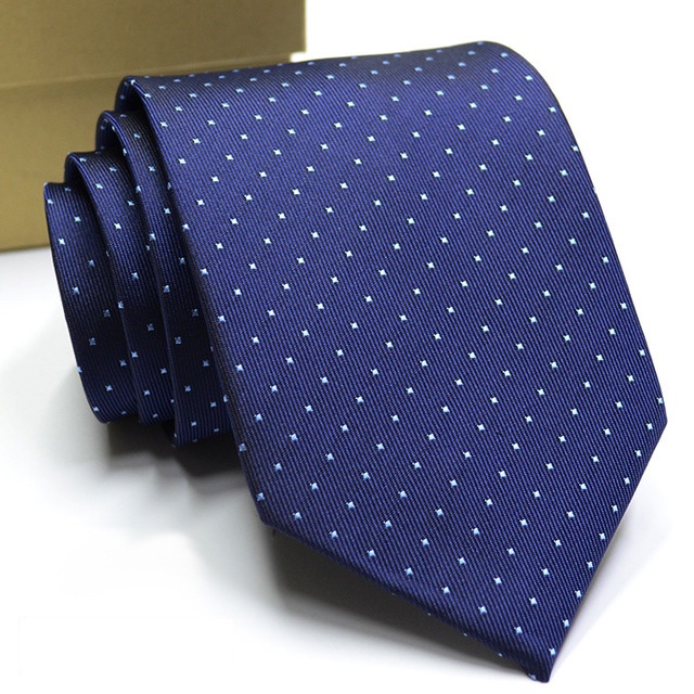 Gravata Masculina Clássica 8CM Azul Gravatas Jacquard Tecido Listras Bolinhas Pescoço Para Festa De Casamento Negócios