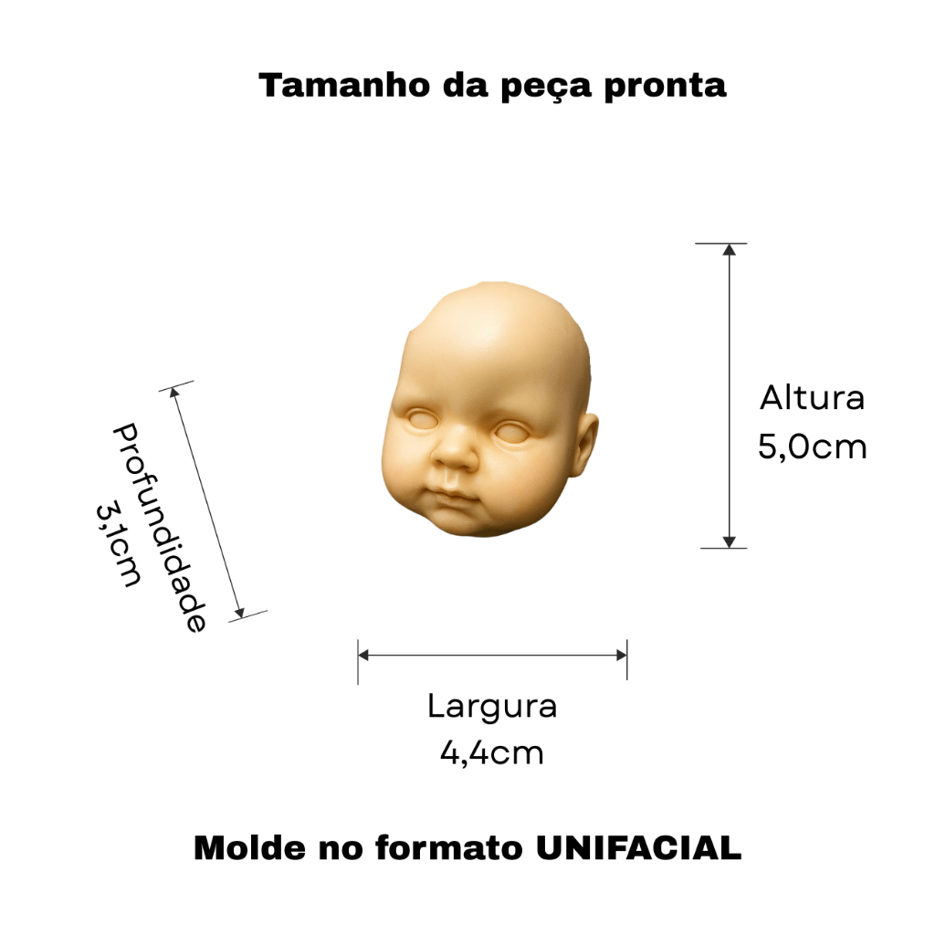 Molde Silicone Cabeça Bebê 2D Unifacial - Confeitaria e Artesanato