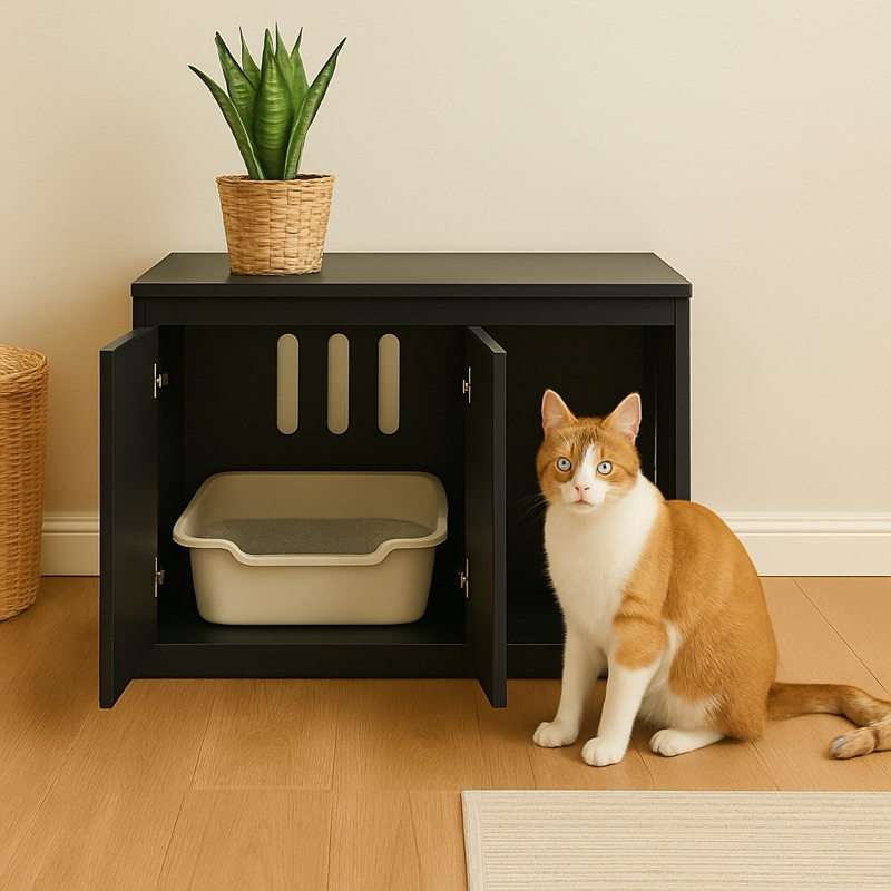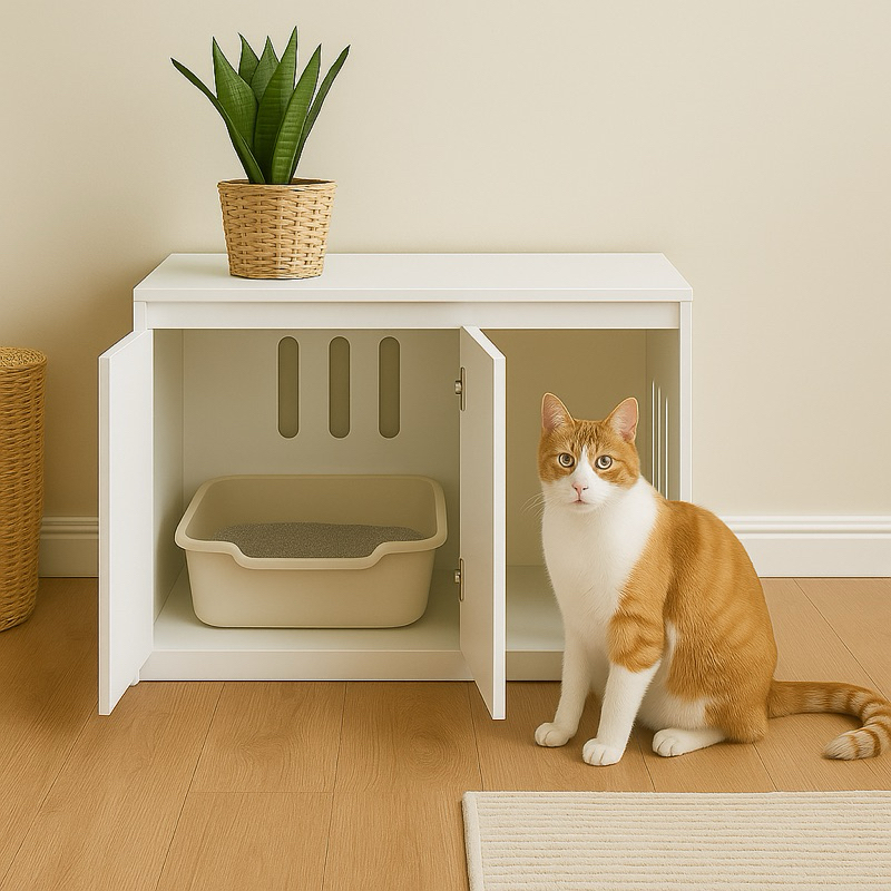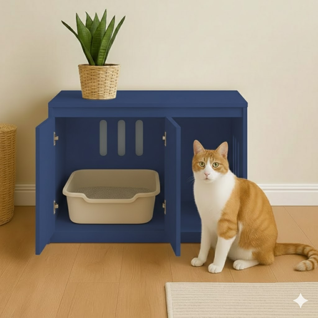 Caixa Em Mdf Para Sanitário De Animais Banheiro Pet Thor Com Recortes 75x60x45