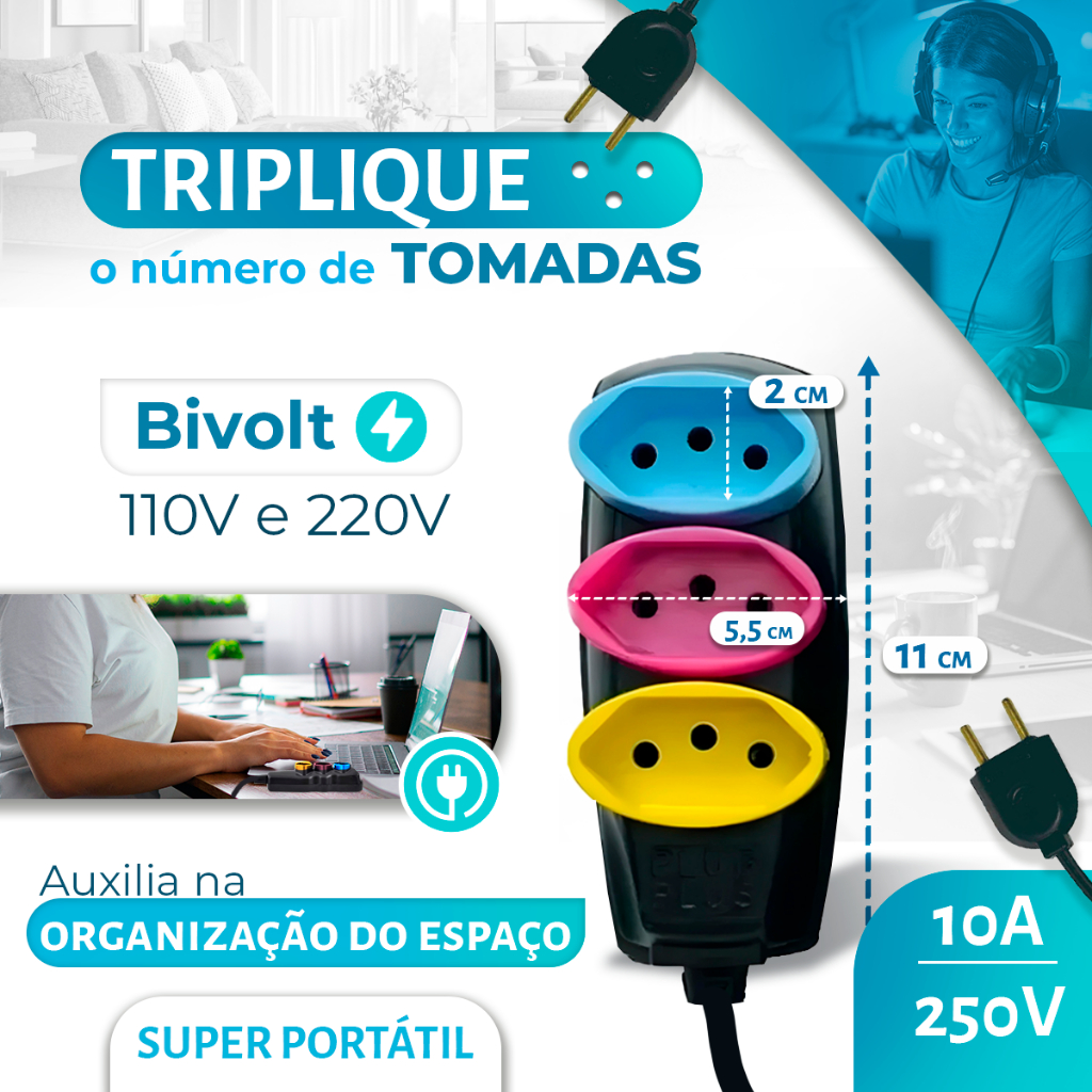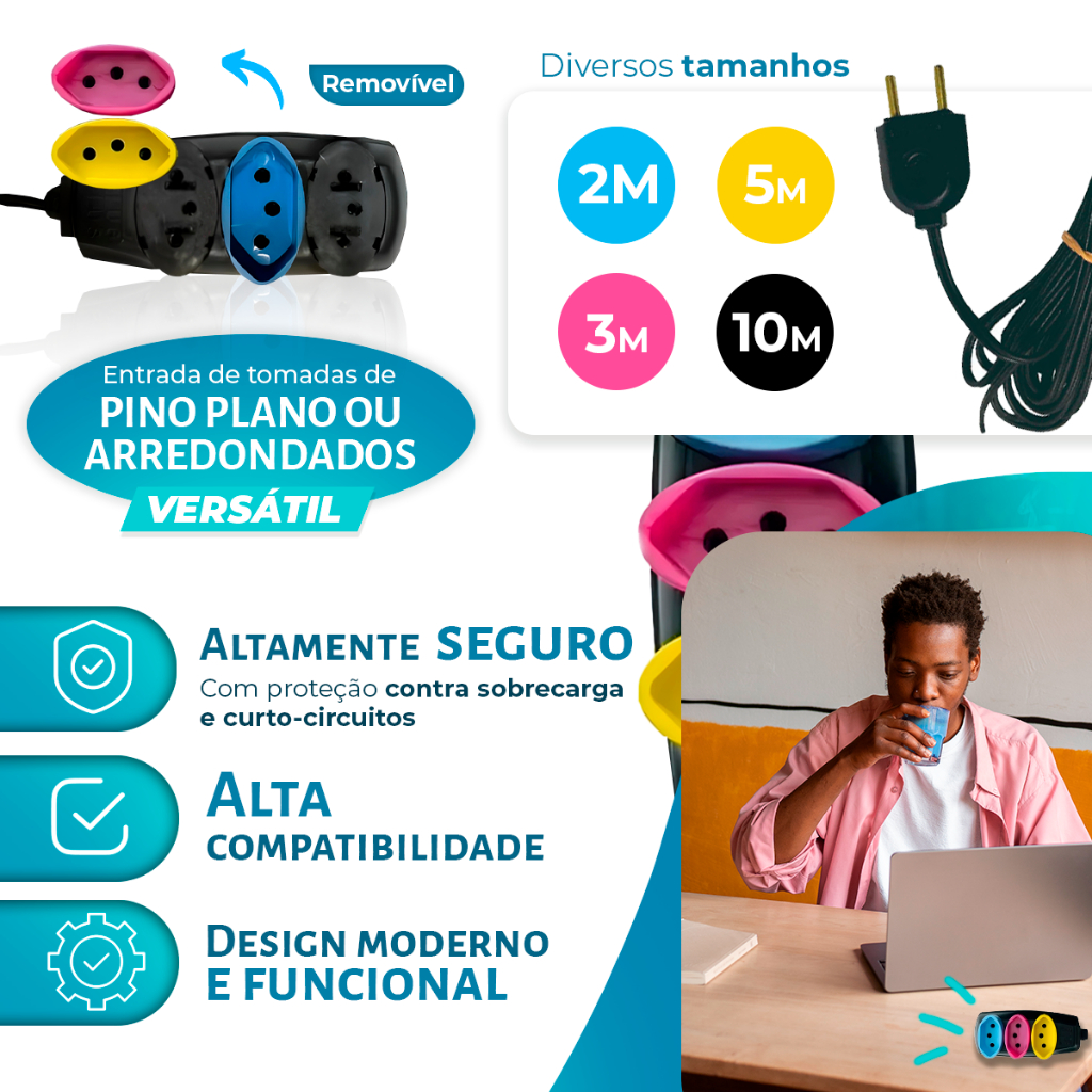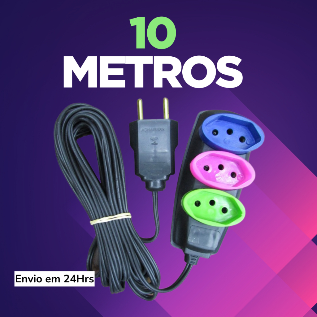 Extensão Elétrica 2/3/5/10 (METROS) Bivolt - Tomadas Tripolares Coloridas
