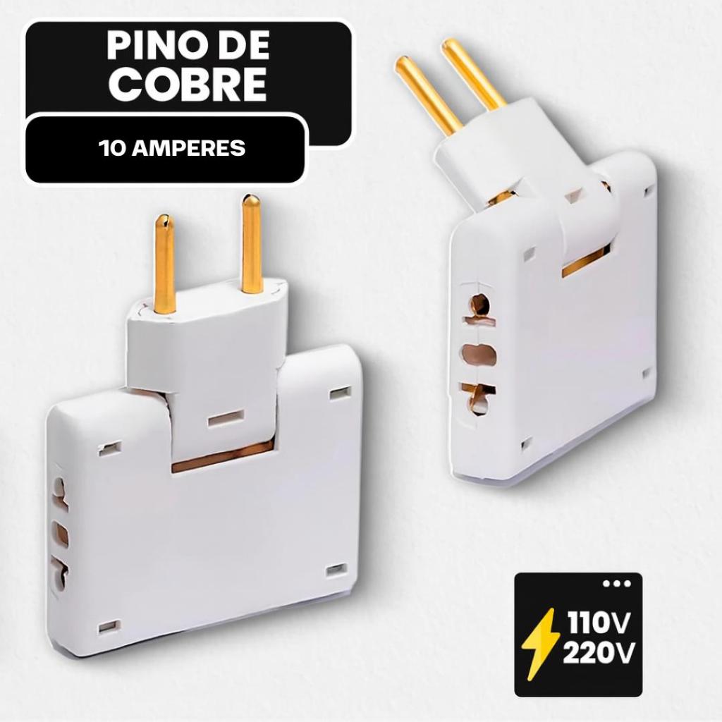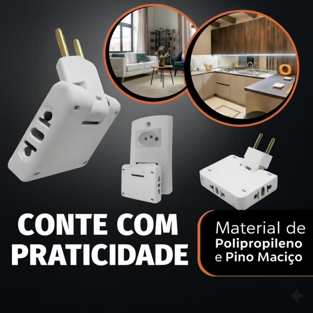 Adaptador Elétrico Articulado 3 Saídas 10A – Gire e Use em Qualquer Lugar