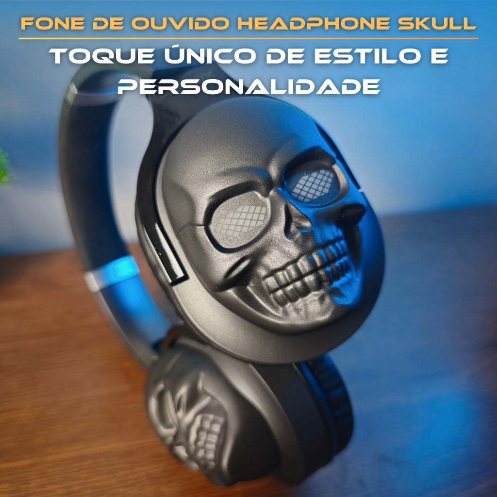 Fone De Ouvido Bluetooth HeadPhone RedFone Com Formato De Caveira Skull Sem Fio