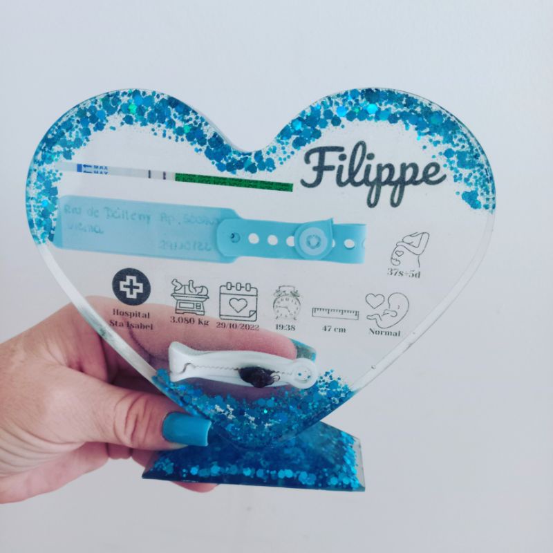Placa eternização do nascimento/informações (umbigo) coração grande