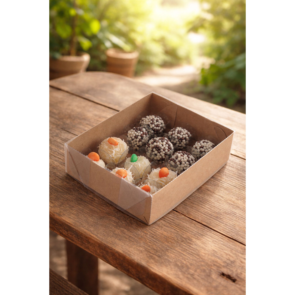 10- 40 Caixa Kraft para Presente 15x11x4 cm Visor Acetato, Papel Kraft e Duplex Embala Cristal