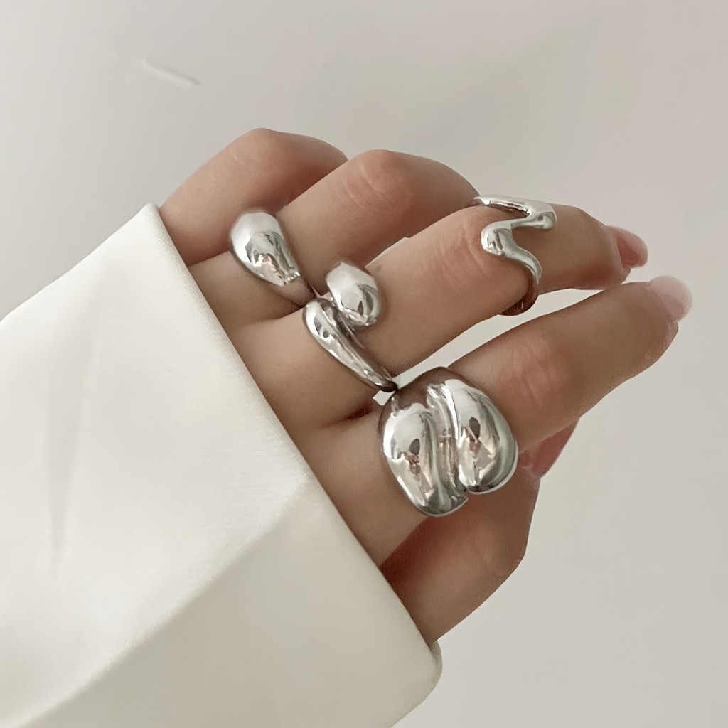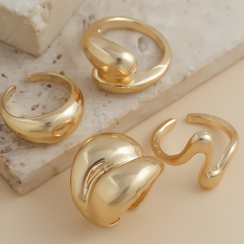 4 Pçs/Set Moda Geométrica Anéis Abertos Conjunto Para Mulheres Punk Metal Irregular Oco Grosso Robustos Jóias Presente